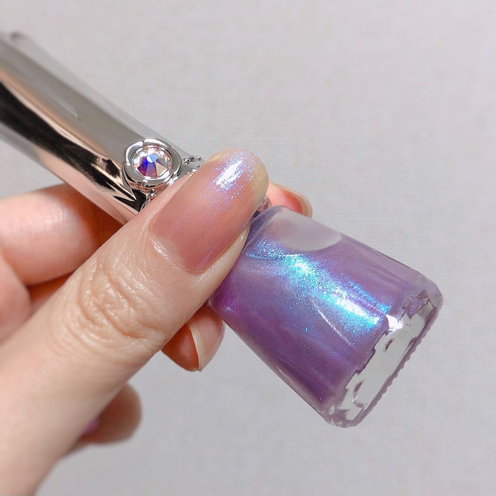 輝く青ラメがとにかく可愛い♡透け感ラベンダーネイルꕤ ラベンダーのベースカラーに偏光青ラメがたっぷりと入っていて美しく輝きます🩵✨ ジルスチュアートのネイルはとってもお求めやすい値段なのも嬉しい🤭♥️