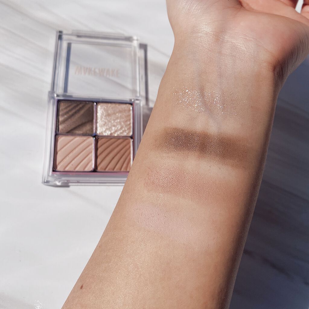 WAKEMAKEのパレットは、マットもラメも品質がいいと感じるし、色合いもお洒落で好き。今回も、ラメが全部夕焼けのようなキラキラな感じで綺麗だし、シマーも細かくて密着する感じで金属みたいな光沢で綺麗。 粉質は星5なんだけど、三角で区切られてるとこが小さすぎて使いづらいというのと、多色なわりに色の違いが全然ないから、意外とレパートリーないというとこかな。 ベースカラーが、5色。ベージュ、ほぼ白のベージュ、薄すぎるピンク、もうちょっと濃くしたやつ二色。
