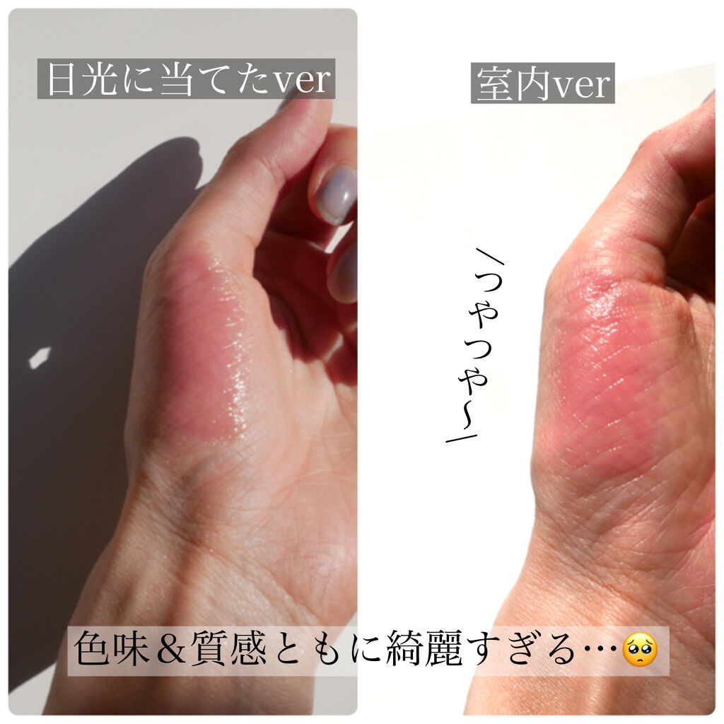 売り切れ続出!高発色、色長持ちなのに、しっかりリップケアも。 ドラッグストアで買える高密着美容オイル配合、プルンとリップが作れるリップクリーム オレンジ味のあるテラコッタカラーですが、ほどよく大人の落ち着きがある色味で、イエベさんだけではなく、ブルべさんも浮かない色だと思います。 こちらは確かに比べると色は長持ちかも。 1、2回ティシュオフしたり、塗布後に数分待つとより色味が長持ちするとのことなので、試すのもいいと思います。