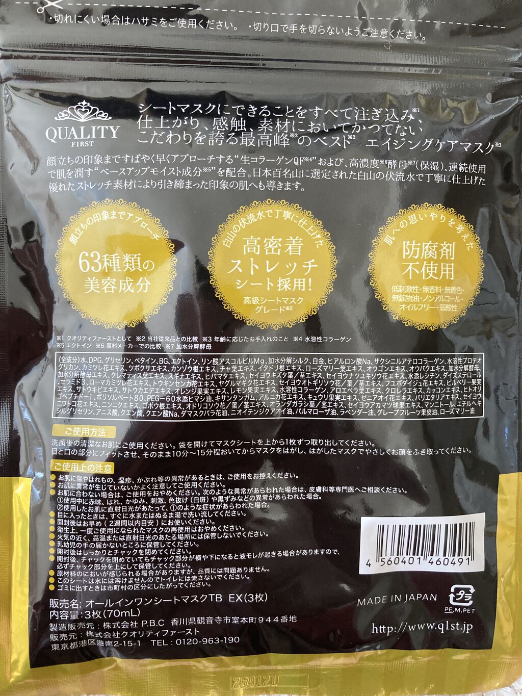 商品詳細情報クオリティファースト オールインワンシートマスク ザ・ベストEX