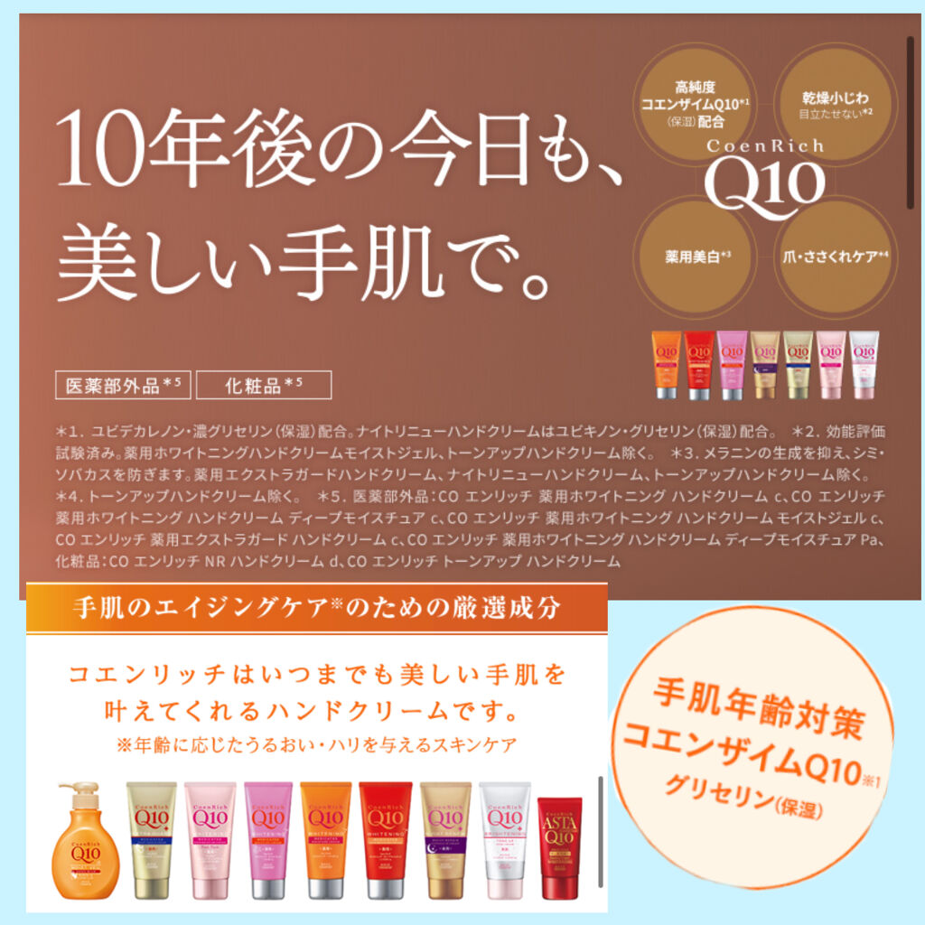もっと見るおすすめアイテムコエンリッチQ10×ハンドクリーム