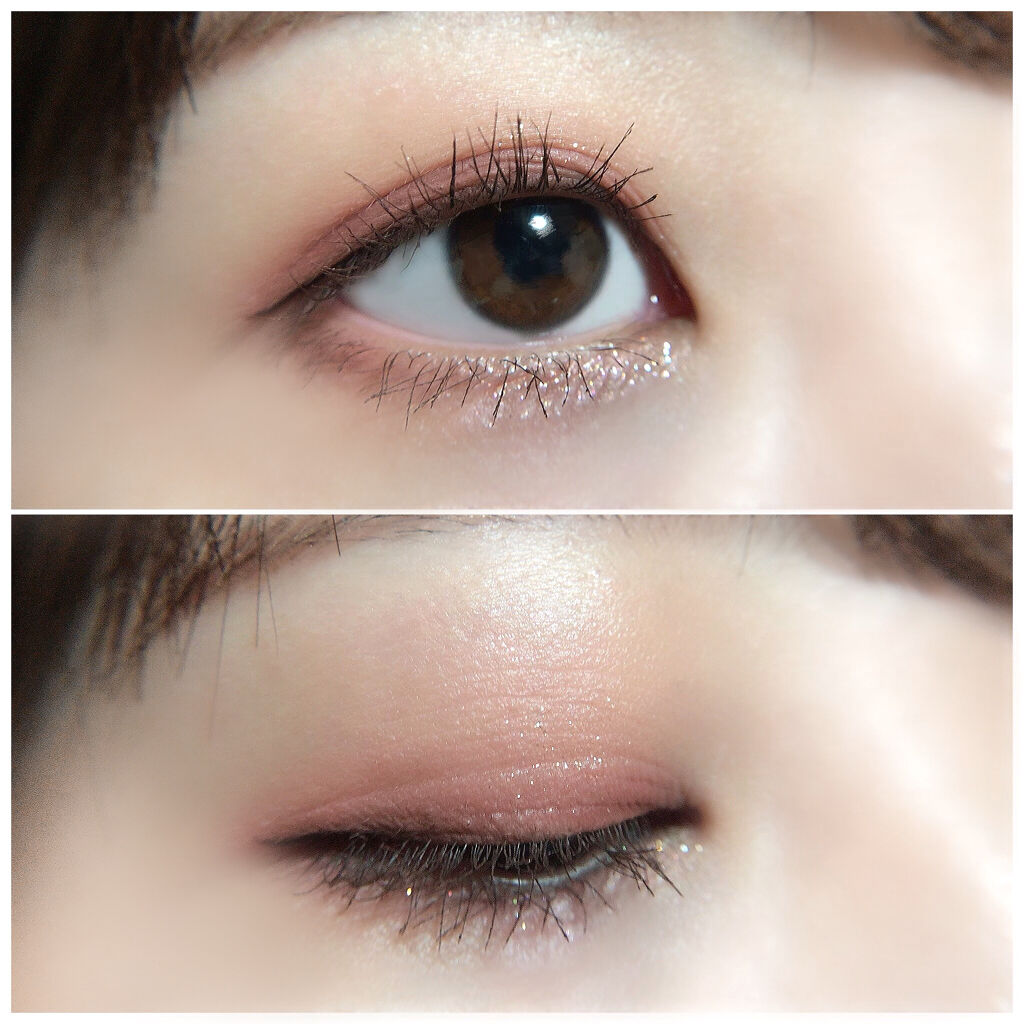 右上のベージュがまぶたを明るく整えてくれるおかげで次にのせる左下のカラーが綺麗に発色。 左上のぎっしり詰まったラメを涙袋に塗ると瞳がうるっとしているように見えて可愛いです ✧˖ 締色のブラウンにもパールが配合されているのでライン使いだけでなく、グラデーションになるように幅広めに塗っても素敵に仕上がります。 付属のダブルチップが少し柔らかめで肌あたりが良いところも ◎ どんなシーンでも使える、ベージュを基調としたナチュラルなカラーが揃ったパレットなのでひとつ持っておくとすごく便利です ˖ ࣪⊹