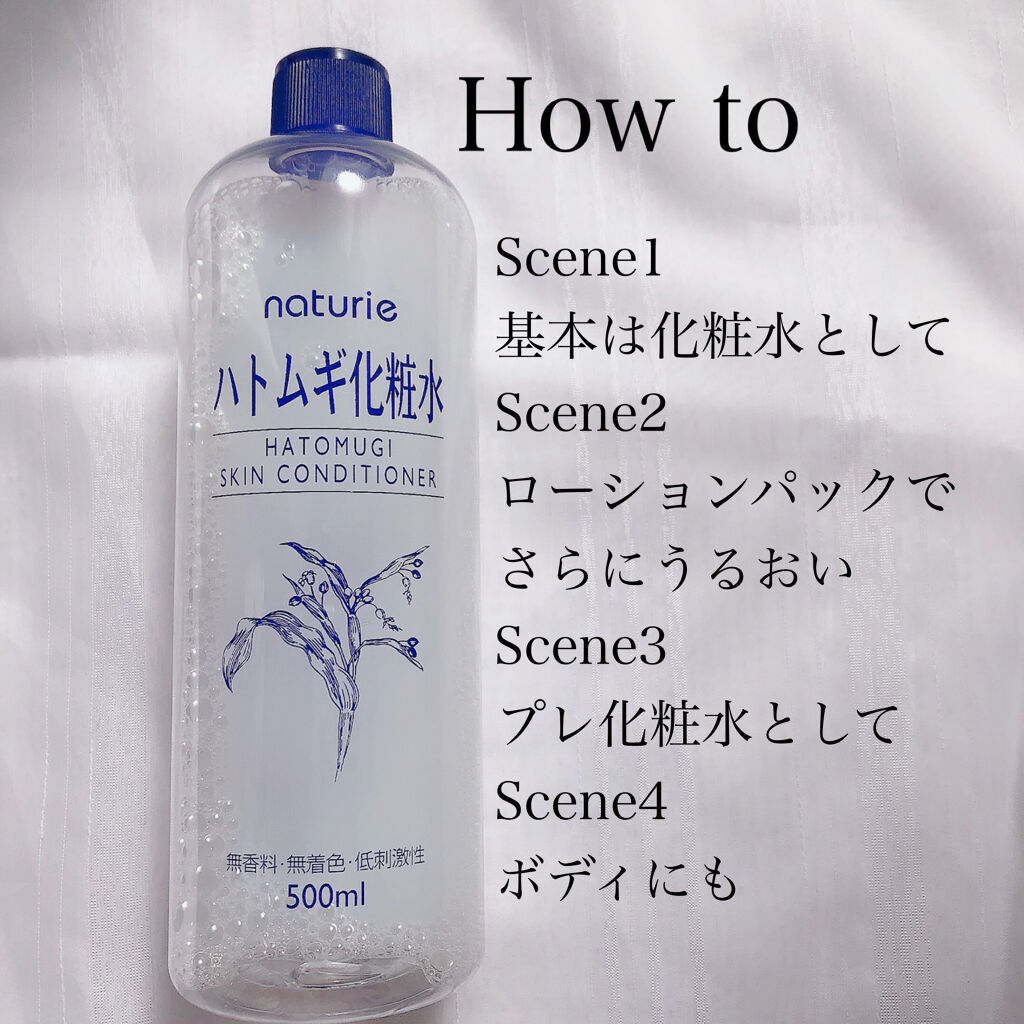 - 肌にうるおいを与えてスキンコンディションを整える、天然保湿成分ハトムギエキス配合の化粧水です。 みずみずしく浸透力に優れた処方なので、重ねるほどぐんぐん肌になじみ、角質層を水分で満たします。 たっぷり肌に重ねづけしてもべたつかないさっぱりした使用感なので、スキンケアのはじめにたっぷり使ってください。 肌がひんやりしてきたら十分に水分がなじんだサインです。 ■基本は化粧水として スキンケアのはじめにたっぷり使ってください。 500円玉大の量を3回重ねづけするのが目安です。 肌がひんやりしてきたら十分に水分がなじんだサインです。 ■ローションパックでさらにうるおい コットンやフェイスマスクにたっぷり含ませて約3分間パックすると、角質水分量がさらに高まります。 ■プレ化粧水として 洗顔後すぐにつけることで、その後につけるスキンケアのなじみをよくします。※角質層まで ■ボディにも べたつかないので、毎日の入浴後や日差しを浴びた後などのボディのスキンケアにもおすすめです。