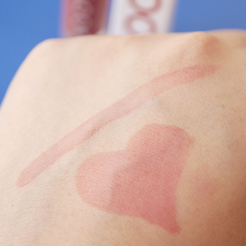 弾力のある“生ぷにっ質感”が特徴。ゲルを採用していて、ぷにぷに気持ちイイ❤ 肌への密着度が高く、ぴたっとフィットする。なのに、肌に伸ばすと素早くサラサラに! オイルとたっぷりの微細パール配合で、パウダーでは表現できない生っぽい艶感が✨ 透け感のあるアプリコット系のカラーで、誰にでも合いそうな色味。 10種の美容保湿成分配合で、乾燥も感じなかった。