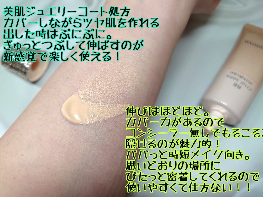 マキアージュドラマティックヌードジェリーBB【使った商品】ドラマティックヌードジェリーBB【商品の特徴】¥3,080円(税込)30gSPF50PA+++美肌ジェリーコート処方保湿成分配合洗顔料オフ可アレルギーテスト済無香料【使用感】容器の中の...