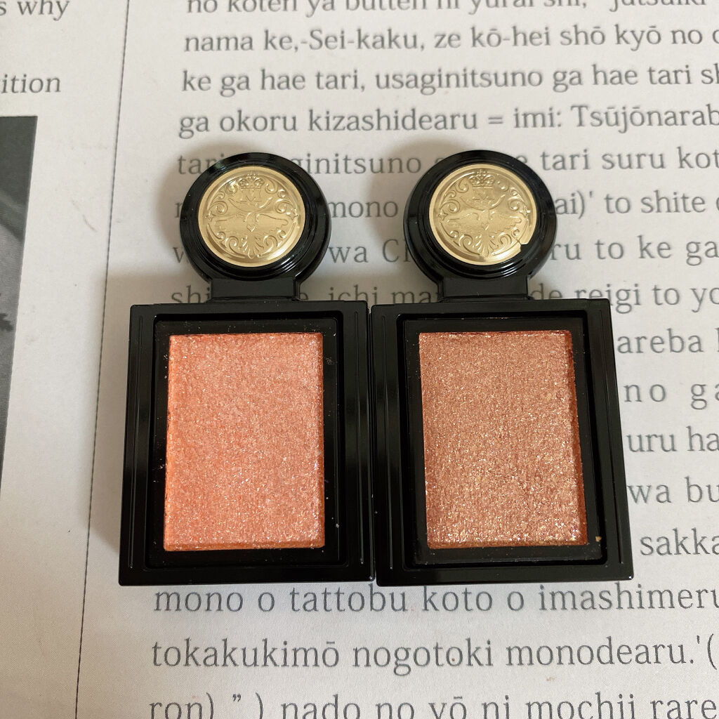マットだけどどこかツヤ感もあるような柔らかい粉質……なのに粉飛びも少なめなので 瞼に乗せやすい🥰 5番のラメ感は控えめ。 シャンパンカラーに多色ラメがチラッ|˙꒳˙)✨ 実はこの番号通りにカラーを使うとプロ並みのメイクが完成するらしいです……‼️ ケースも薄くてコンパクトなのにベースカラー、ラメ、締め色、チークまで付いてるので 持ち運びやいつか行けるようになるであろう旅行などにも良さそうです❣️