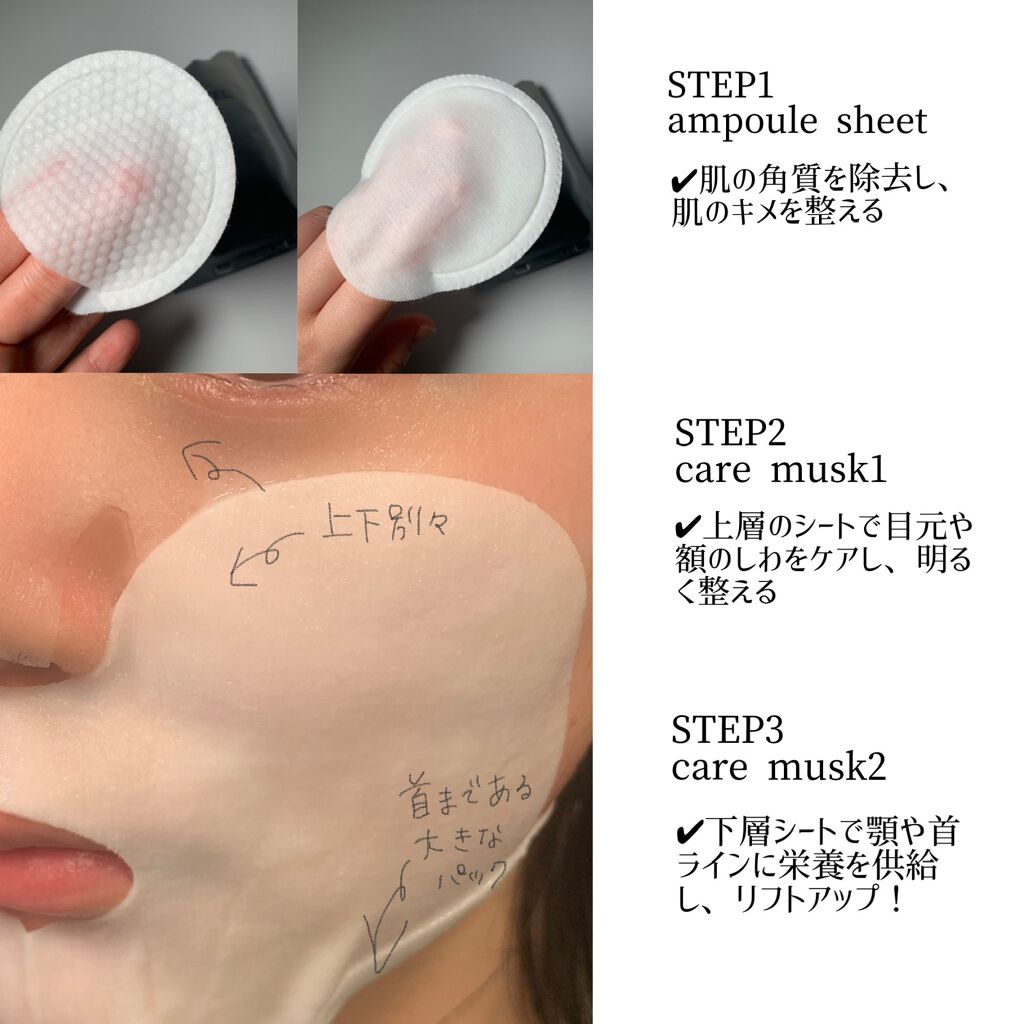 #PRDEWYCELさまからいただきましたデュイセルプライベートケアマスク\1週間に1度のご褒美ケアマスク/アンプルシート、パック(上層&下層)の3STEPのタイプ✨️・アンプルシートしっかりした厚みのあるシートでふき取りやすい凹凸面は優しい...
