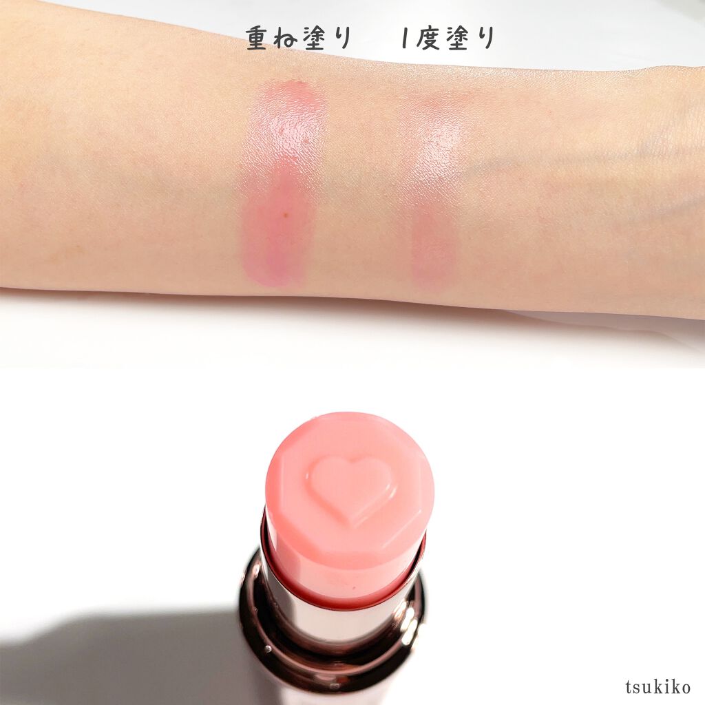 - <T02 ロゼミルクティー> トリエチルヘキサノイン、リンゴ酸ジイソステアリル、ワセリン、イソステアリン酸水添ヒマシ油、ダイマージリノール酸水添ヒマシ油、合成ワックス、ヘキサ(ヒドロキシステアリン酸/ステアリン酸/ロジン酸)ジペンタエリスリチル、ミツロウ、(HDI/トリメチロールヘキシルラクトン)クロスポリマー、メタクリル酸メチルクロスポリマー、(エチレン/プロピレン)コポリマー、ミネラルオイル、キャンデリラロウエステルズ、ヒマワリ種子ロウ、ペンタステアリン酸ポリグリセリル-10、トコフェロール、グリチルレチン酸ステアリル、スクワラン、セラミドNP、ナイアシンアミド、酸化チタン、黄4、酸化鉄、赤201、青1、赤202、水酸化Al、赤223 <T03 ディアレストレッド> トリエチルヘキサノイン、リンゴ酸ジイソステアリル、ワセリン、イソステアリン酸水添ヒマシ油、ダイマージリノール酸水添ヒマシ油、合成ワックス、ヘキサ(ヒドロキシステアリン酸/ステアリン酸/ロジン酸)ジペンタエリスリチル、ミツロウ、(HDI/トリメチロールヘキシルラクトン)クロスポリマー、メタクリル酸メチルクロスポリマー、(エチレン/プロピレン)コポリマー、ミネラルオイル、キャンデリラロウエステルズ、ヒマワリ種子ロウ、ペンタステアリン酸ポリグリセリル-10、トコフェロール、グリチルレチン酸ステアリル、スクワラン、セラミドNP、ナイアシンアミド、黄4、酸化チタン、赤201、赤202、酸化鉄、赤223、水酸化Al <T04 スウィートガナッシュ> トリエチルヘキサノイン、リンゴ酸ジイソステアリル、ワセリン、イソステアリン酸水添ヒマシ油、ダイマージリノール酸水添ヒマシ油、合成ワックス、ヘキサ(ヒドロキシステアリン酸/ステアリン酸/ロジン酸)ジペンタエリスリチル、ミツロウ、(HDI/トリメチロールヘキシルラクトン)クロスポリマー、メタクリル酸メチルクロスポリマー、(エチレン/プロピレン)コポリマー、ミネラルオイル、キャンデリラロウエステルズ、ヒマワリ種子ロウ、ペンタステアリン酸ポリグリセリル-10、トコフェロール、グリチルレチン酸ステアリル、スクワラン、セラミドNP、ナイアシンアミド、酸化鉄、酸化チタン、黄4、赤202、赤223、水酸化Al、赤201 <T06 サクラエンジェル> トリエチルヘキサノイン、リンゴ酸ジイソステアリル、ワセリン、イソステアリン酸水添ヒマシ油、ダイマージリノール酸水添ヒマシ油、合成ワックス、ヘキサ(ヒドロキシステアリン酸/ステアリン酸/ロジン酸)ジペンタエリスリチル、ミツロウ、(HDI/トリメチロールヘキシルラクトン)クロスポリマー、メタクリル酸メチルクロスポリマー、(エチレン/プロピレン)コポリマー、ミネラルオイル、キャンデリラロウエステルズ、ヒマワリ種子ロウ、ペンタステアリン酸ポリグリセリル-10、トコフェロール、グリチルレチン酸ステアリル、スクワラン、セラミドNP、ナイアシンアミド、酸化チタン、水酸化Al、赤223、赤104(1)、黄4、赤201