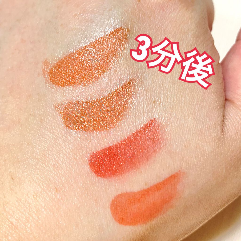 💋rom&ndロムアンドJUICYLASTINGTINTジューシーラスティングティント#13EATDOTORI4枚目の写真は、塗布して1分後に拭き取った時の色の残り方。参考までに!ティント力もそこそこあって、瑞々しくて乾燥しません。色...