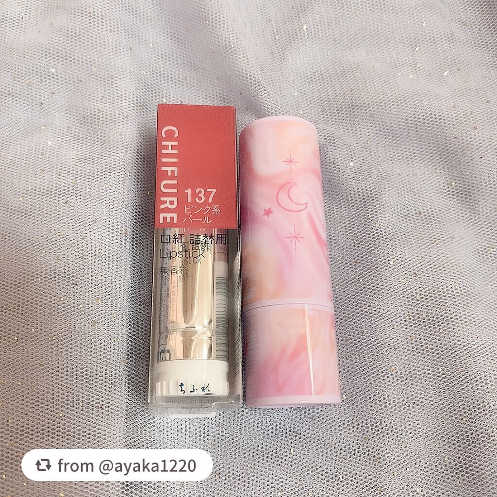 - 美容液*と同じくらいヒアルロン酸を配合した、しっとりうるおう口紅。 「ちふれ 美容液 ノンアルコールタイプ」と同じ濃度(0.2%)の保湿成分ヒアルロン酸を配合。なめらかにのびて、くちびるにフィット。しっとり、ふっくらとした女性らしい口もとを演出します。 別売りのケースと組み合わせて、オリジナルの口紅を楽しめます。 *ちふれ 美容液 ノンアルコールタイプ 保湿成分:ヒアルロン酸 配合 油性エモリエント成分:マカデミア種子油 配合 無香料・ケース別売 【使用方法】 ・簡易キャップをはずし、ケースにしっかりと差し込んで使います。 ケースにセットしない時は必ず簡易キャップをしてください。 ・1.5cmくらい出して、直接またはリップブラシを使って、唇によくなじませるようにぬり込みます。 ・必ず専用ケース(別売り)にセットしてお使いください。 【口紅からエコのお話】 ちふれブランドの「口紅(詰替用)」は、ケースを何度も再利用しながら使えるタイプです。 組み合わせは自由自在。お気に入りの色を選んでケースにセットするだけで、自分だけの口紅ができあがり! しかもこんな小さな気配りで環境にも配慮できる、とってもかしこい口紅です。