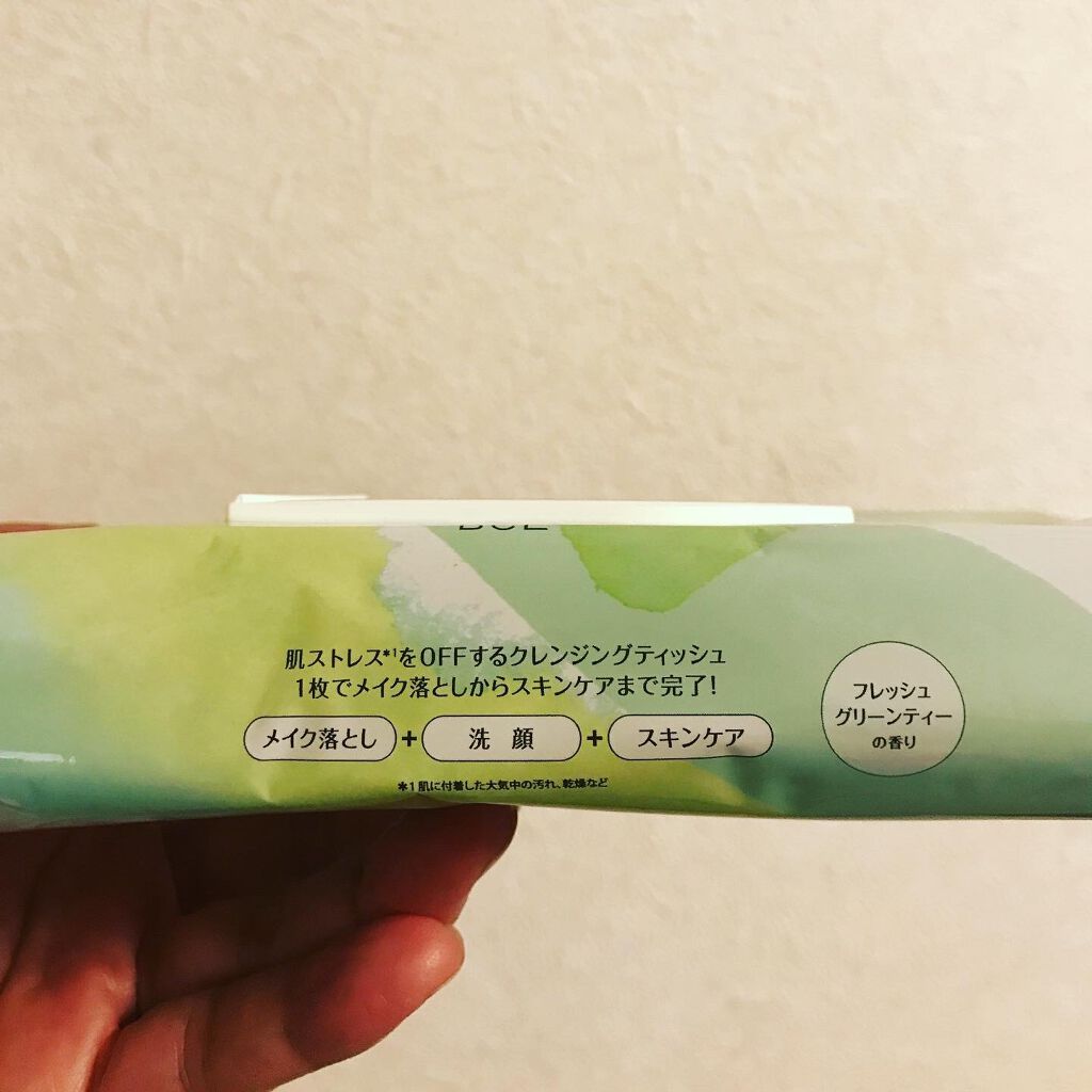 - 帰宅後の新習慣!さっと今日のメイクも肌ストレス(*)も速攻オフ! ふき取るだけですっきり潤い素肌のクレンジングティッシュ。 ◆帰宅したらふき取るだけ。メイクオフ・洗顔・スキンケアが1枚で完結できます。 ◆液たっぷり摩擦低減処方 ◆1枚で顔全体をふける大判シート ◆素肌と同じ弱酸性!肌にやさしい安心処方(パラベンフリー・アルコールフリー・鉱物油フリー・シリコンフリー) ◆フレッシュグリーンティーの香り * 肌に付着した大気中の汚れ、乾燥など