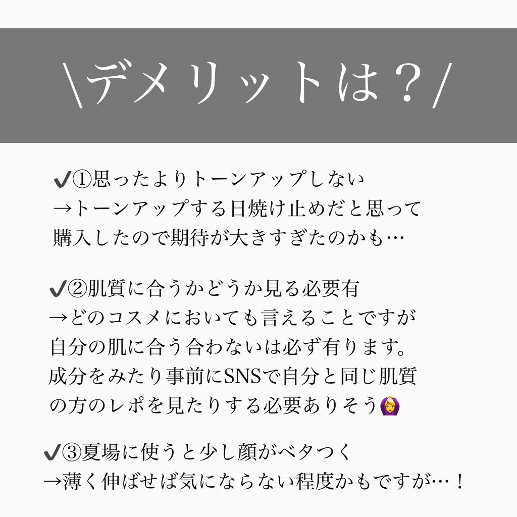 | 日焼け止め・UVケアランキング第14位 | ナチュラルにトーンアップして元からこういう肌ですよ~❣️て感じに肌がキレイに見える! | 詳細を見る | |