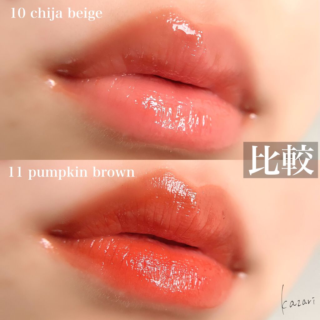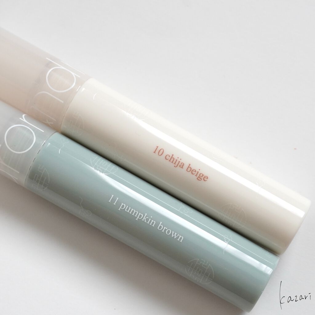 rom&ndのティントはフレッシュなオレンジは数が少なく定番だと01番だけ(だと思います) 深みのあるオレンジやオレンジブラウン系になると一気に色が増える!! 濃いめの発色は13,20あたりで08のアップルブラウンは濃すぎず比較的使いやすい色味だと思います👌 使いやすいヌードよりの色味が一気に増えたrom&nd もともとFIGFIGやJUJUBEが使いやすい!と人気でしたが、新色が増えてよりヌードなカラーが増えました👏 1番ベージュ系に近いのは新作の22,23あたり FIGFIGとJUJUBEをよりイマドキの色に仕上げたのが18,19あたりになります 個人的に好きなのは10,11あたりです 使いやすいし血色感もほどよくでる🌟 パッケージがその色になってるので結構どんな色か分かりやすいrom&nd 比較するとこれよりは赤いのかとか薄いのかなど分かるので参考にしてみて下さい🙌