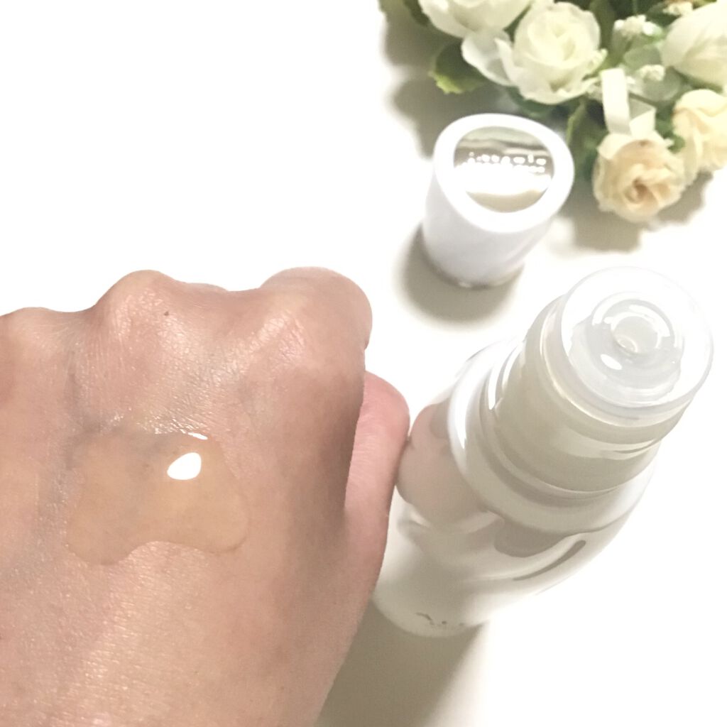 コーセー独自開発のトリートメントシールド成分により、高いフィット力・負担感のなさ・マスク時の化粧もちを叶え、軽やかなタッチで心地く、マスクにもつきにくいという特徴の商品となっています。 SPF50+/PA++++と紫外線防止効果もある点も魅力的に感じました。 手に取り出してみるとみずみずしいテクスチャーのクリームで、スーッと心地のよくのばしていくことのできる伸びの良さを感じました。 しっとりとした負担感のない付け心地で、ある程度伸ばすと、ピタッと肌に密着するようにして馴染み、毛穴や色ムラも目立たずにナチュラルにカバーしてくれ、ツヤ肌を演出してくれる仕上がりになるところも気に入りました。