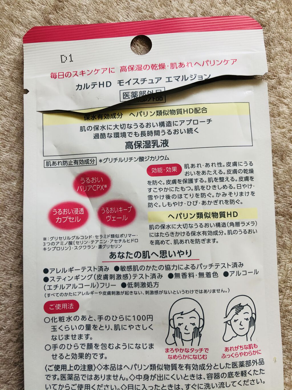 テクスチャーはサラッとして、ベタつかない感じだけど、もちっと潤います♡ 私はお試しミニサイズを買って、温泉や旅行行くときに使ってます🎵 #ヘパリン類似物質 #カルテHD #さらさら乳液