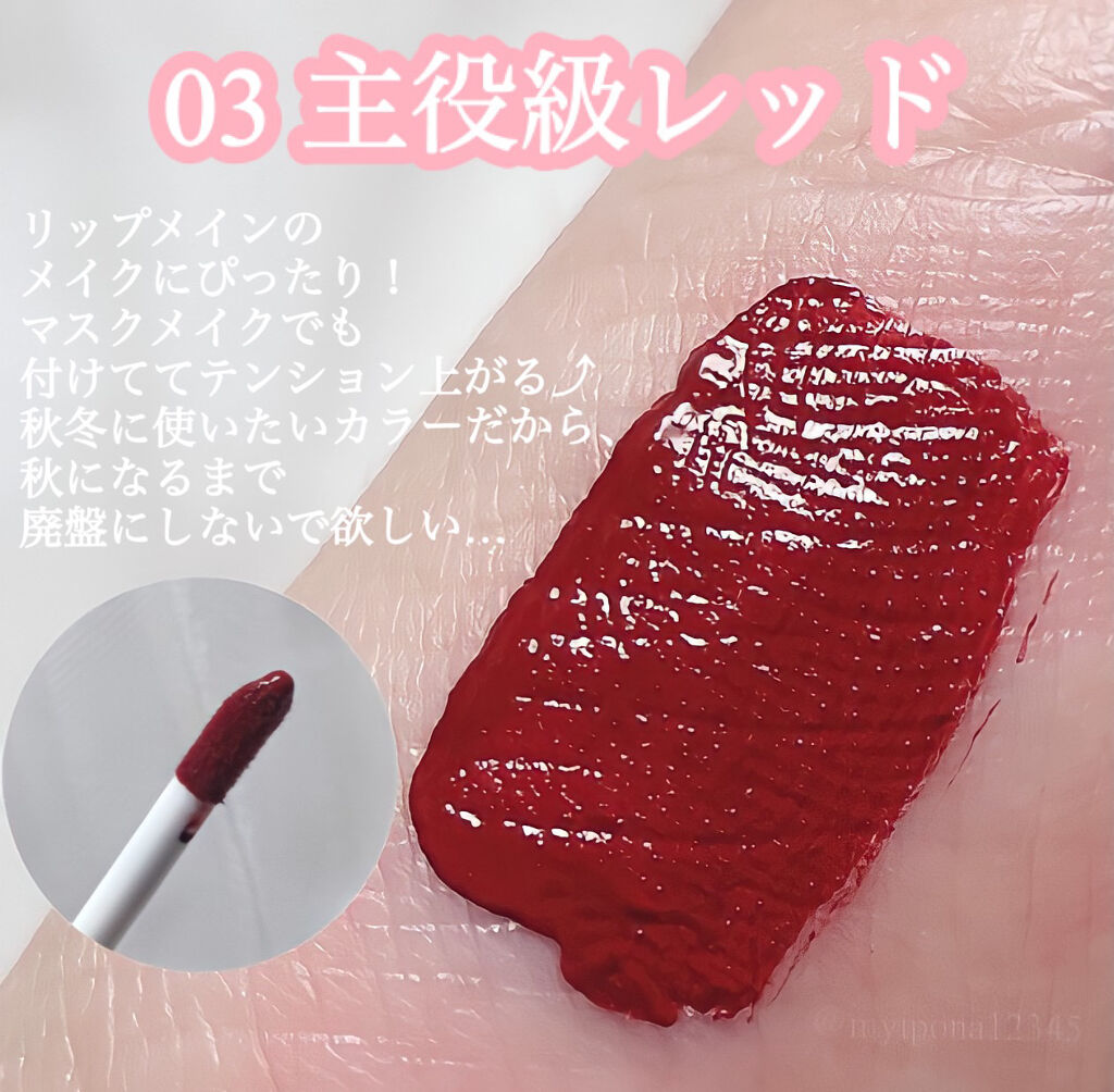 | 口紅・グロス・リップライナーランキング第61位 | ほんのりフルーツみたいな良い香りがします🍎 付けた感じのテクスチャーはぷるもち系ですね | 詳細を見る | |