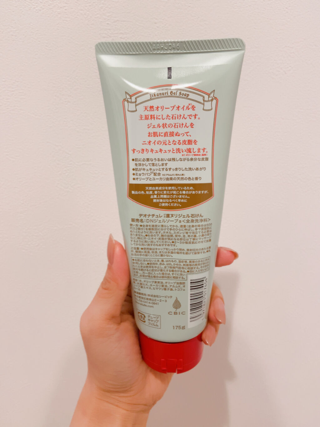 - \11年間ず~っと売上No.1*直ヌリ制汗デオドラントブランド/ 泡立てずに!オリーブのジェルの力で皮脂・ニオイまで**洗い落とす全身洗浄料「直ヌリジェル石けん」 ◆◆商品特長◆◆ 1.ニオイの原因となる酸化した皮脂汚れをすっきりと落としながら、うるおいは保つ 2.肌がキュキュッとする、新感覚のすっきりとした洗いあがり 3.主原料は天然オリーブオイル***で合成香料、着色料、防腐剤、無添加 オリーブとユーカリ由来の天然の色と香り 4.ミョウバン配合**** ◆◆こんな方へおすすめ◆◆ ・日ごろから制汗デオドラントを使っている人 ・いつも使っているボディソープでは汗やニオイがすっきり落とせていない気がする人 ・とにかく汗・ニオイをしっかり落としたいと思っている人 ==注意== ●お肌に合わないとき、傷、はれもの、湿疹等、異常のあるときは使用しない。●使用中、赤み、はれ、かゆみ、刺激等の異常があらわれたときは使用を中止し、皮フ科専門医等に相談する。そのまま使用を続けると症状が悪化する場合がある。●目に入らないよう注意し、万一目に入った場合は、すぐに洗い流す。異常が残る場合は眼科医に相談する。●使用後はキャップをしっかり閉め、直射日光のあたる場所、極端に高温、低温、または多湿の場所を避けて保管する。●乳幼児の手の届くところに置かない。 販売名:DNジェルソープa *インテージSRI+制汗剤市場 2013年5月~2024年4月 ソフトストーンW(販売名:デオナチュレソフトストーンEX(リニューアル前処方)・DN薬用スティックFe)累計販売金額 **ニオイの元となる皮脂を洗浄することによる ***基剤:オリーブ果実油 ****アルムK(収れん剤)