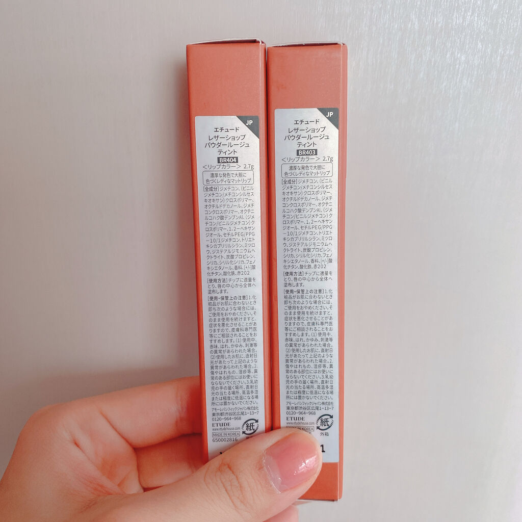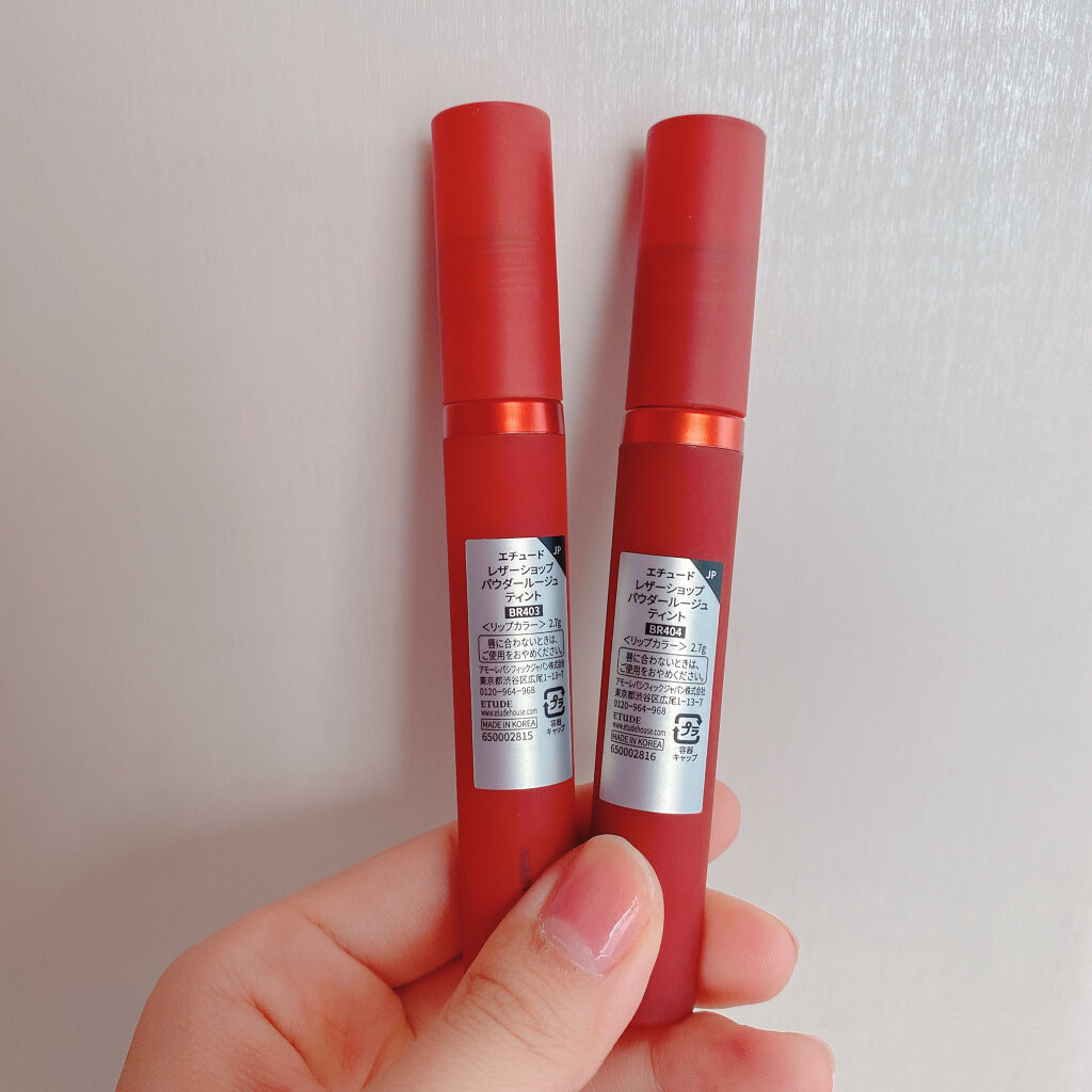 こんにちは!!マヤです❤️今回は…ETUDE レザーショップパウダールージュティントです!!こちらはプレイカラーアイズのレザーショップと一緒に10/2に発売されたものです!★403こちらはオレンジ味があるブラウンです!イエベさんに似合い...