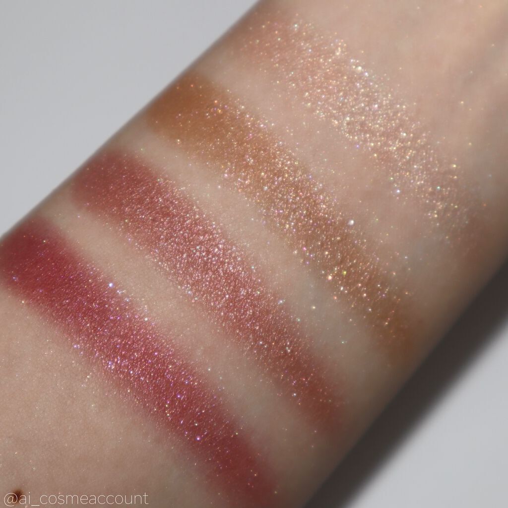 Aiさん 素敵なスウォッチありがとうございます!! これめちゃめちゃ可愛くて買おうか迷ってるんですけどブルベっぽいですか…?👀 右上のカラーは発色強めですかね…😭 ゴールド強めとか教えて貰えると嬉しいです