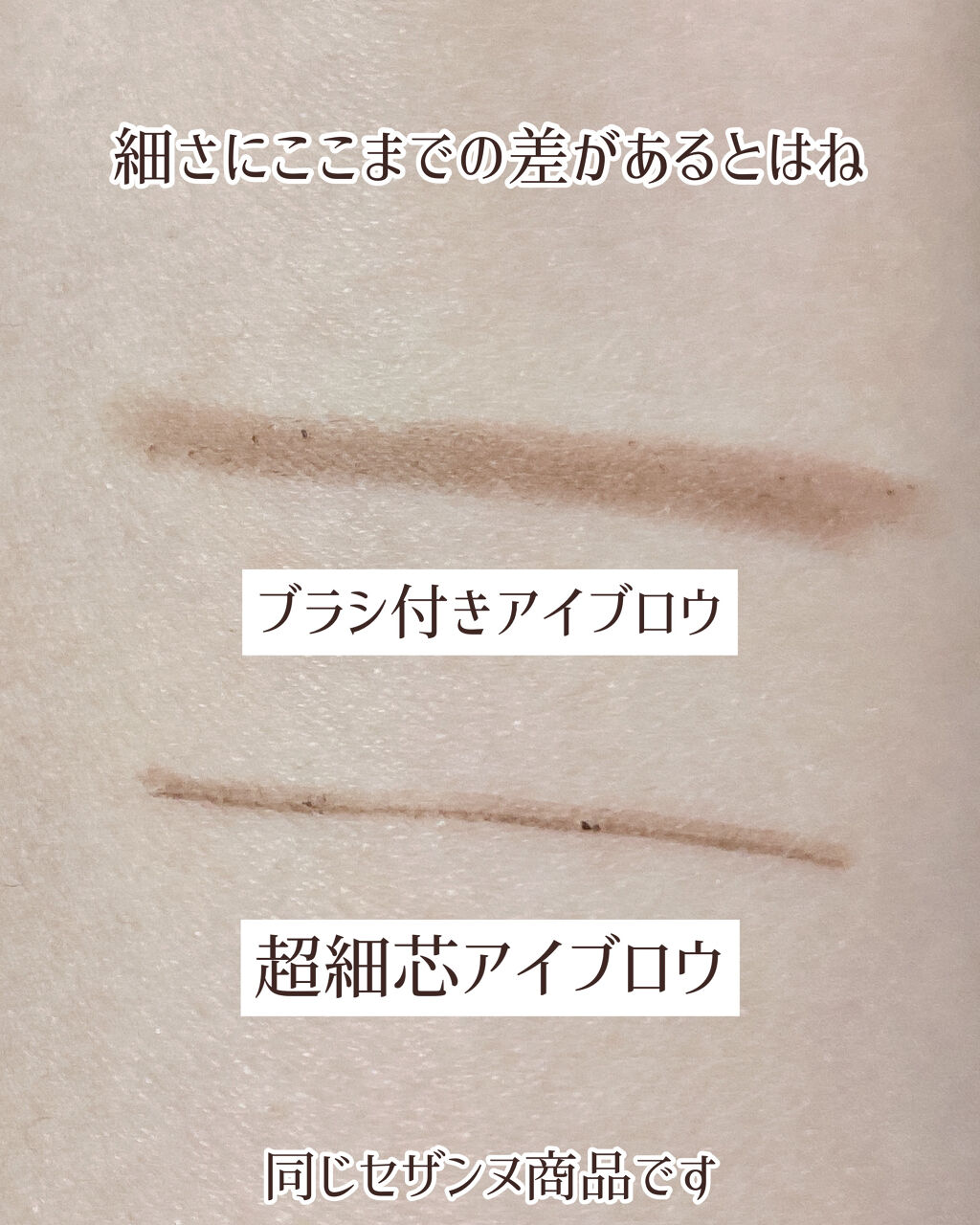 超細芯アイブロウは、眉尻の1本1本まで繊細に描ける、0.9mmの超細芯アイブロウ。 力を入れなくてもしっかり描ける美発色。 パウダー成分80%配合。 1.5mm芯アイブロウ。こちらも削る手間がいらない繰り出しタイプ。 個人的には超細芯アイブロウより、細芯アイブロウNの方が使いやすいと感じでいますが、どちらもお値段がお安くコスパも良いので人気なのは納得の商品です。