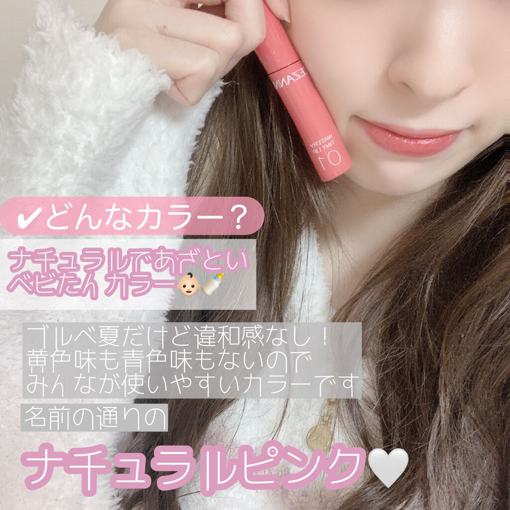 - ツヤ×色×潤いをキープする、セザンヌの新濡れツヤリップ みずみずしい濡れツヤ感ある仕上がりで、発色とツヤが長続きするティントリップです。ティントの発色を透明のベールで覆うリップコートのような処方で、ツヤ感と色をキープします。さらに、唇表面のべたつきは少なく、しっとり潤うオイルinウォーター処方を採用しています。