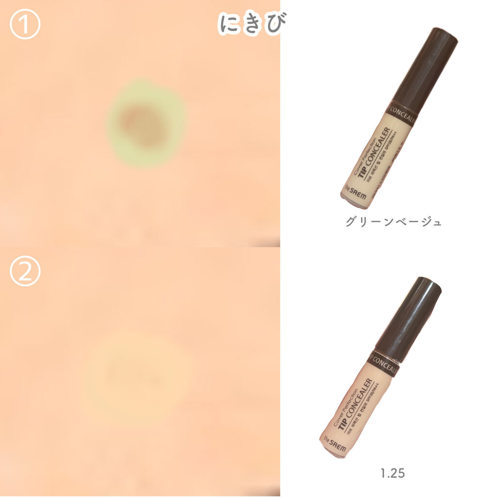 theSAEMカバーパーフェクションチップコンシーラーグリーンベージュザセムのコンシーラーはずっとリピートしていて、グリーンベージュは下地を塗った後ニキビ跡などの赤み消し用に使用チップは大きめでしっかり多めにつくので、細かい塗布は難しい緑色で...