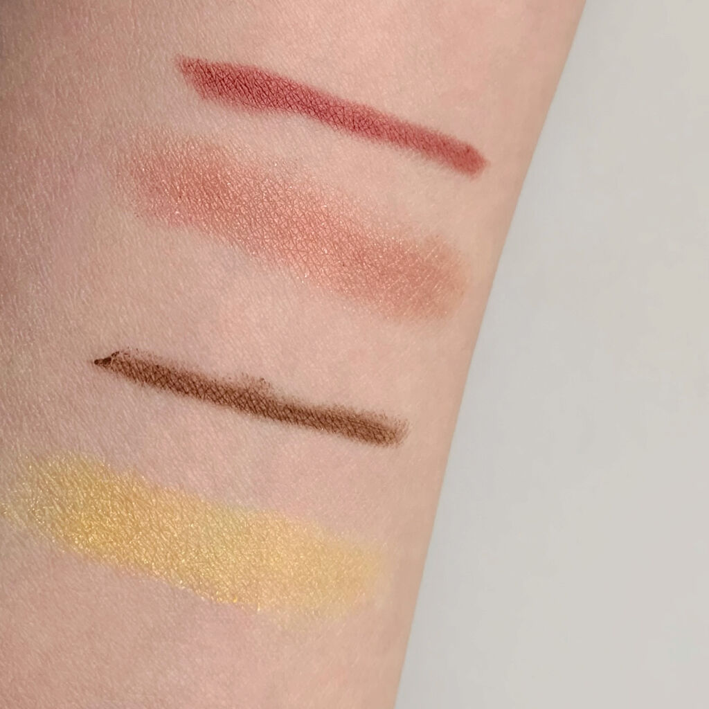 ハイライトとチークが1つになったグロウカラー 普段使いしやすい多色ラメのリキッドライナー フェイスグロウカラーは黄味がかったカラー テクスチャーは柔らかくて手触り良いです ニュートラルなカラーやブルーがかったカラー展開も期待🤍 ライナーはピンクやブルーなどの多色ラメ入り ラメが細かくて光り方が上品✨ デイリーに使いやすいのもポイント高い 乾くとピタッと密着 強めにこすってもラメが取れないので 特に夏シーンに大活躍しそう