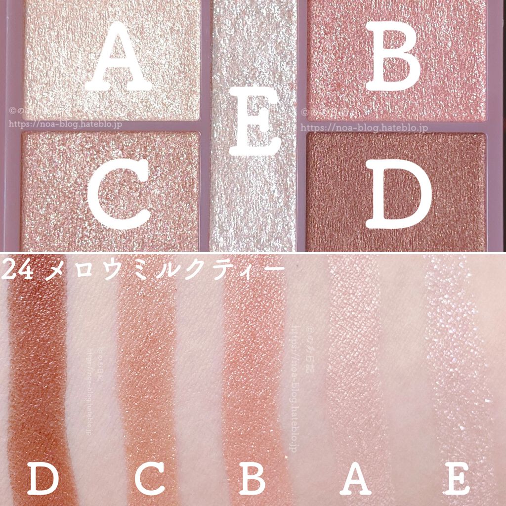 キャンメイクパーフェクトスタイリストアイズ24メロウミルクティー左上白みベージュラメ入り✨️右上オレンジみピンクラメ入り✨️真ん中ちょいピンクみホワイトラメ✨️左下ブラウンベージュラメ入り✨️右下イエベブラウンラメ入り✨️イエベ春、ブルベ夏向...