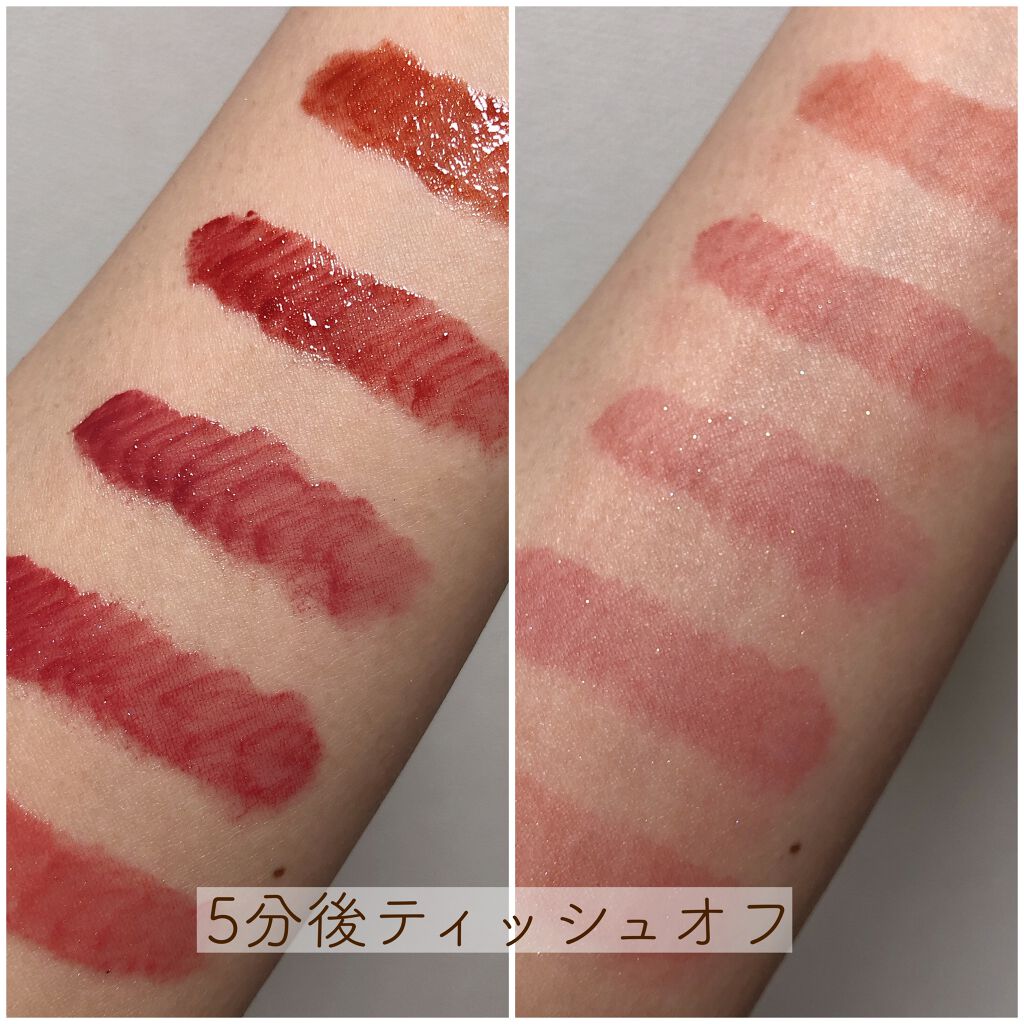大人気すぎて現時点で公式ショップでは売り切れの色も…!要チェックですね! スルスルとぬれるので唇が重たい感じはしません! まろやか発色のカラーでは、1度塗りだと透け感があるためハッキリ発色させたければ2~3度重ね塗りが必要。 保湿力は高めです! 今回のレビューのために20回塗って、クレンジングで拭って…を繰り返したのですが、皮むけや縦じわが気になることなくぷるんっとした唇を保ってくれました✨️ ・ 繊細な色展開・ ぷるんとした質感で乾燥しにくい・ コロンとしたパケが可愛すぎる&持ち運びしやすい