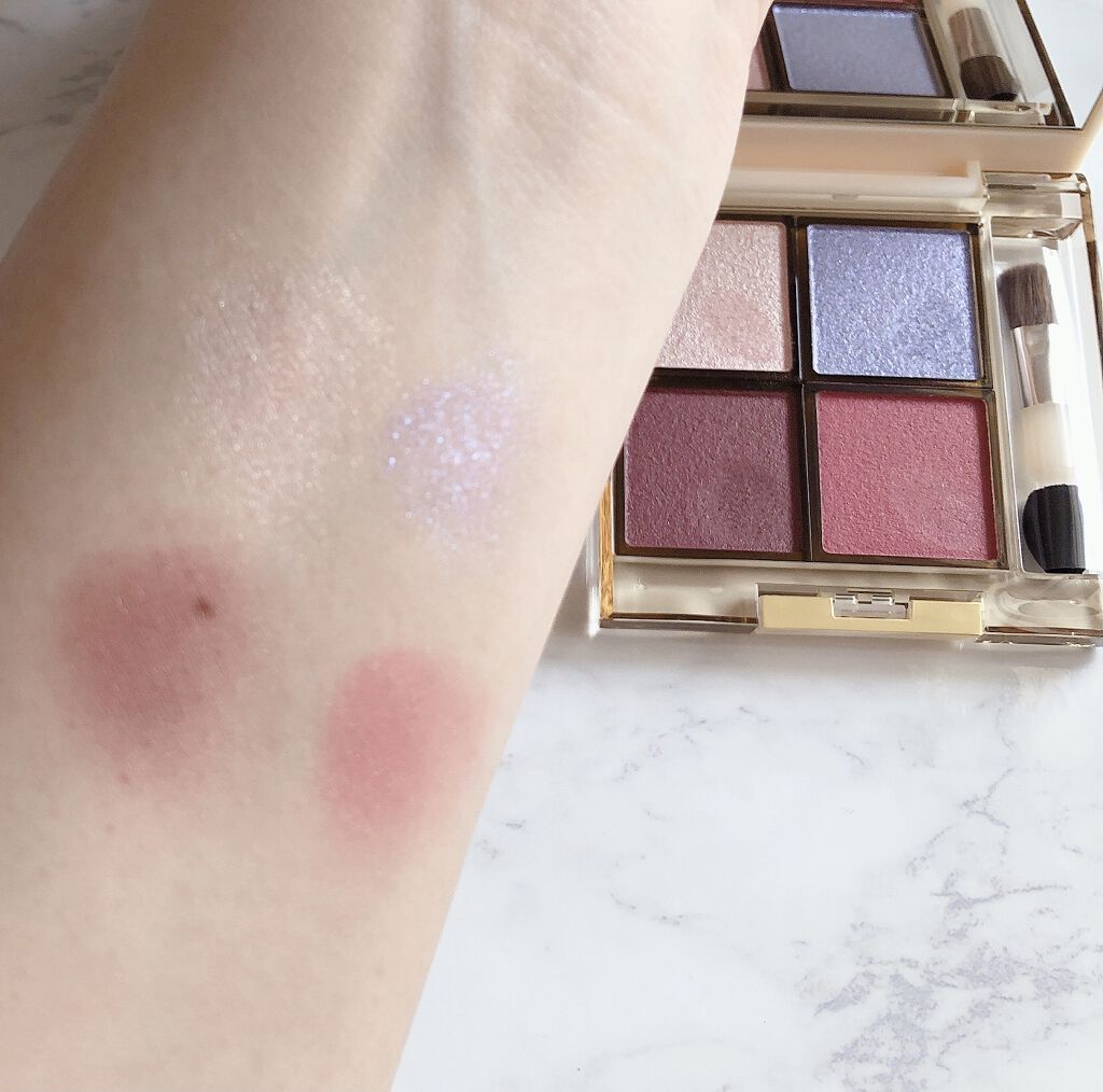 全体的にパール感強めなサンクで、スウォッチで見る限りでは光を集めると確かに白っぽく見えますが全体が白飛びしてしまったりはしません。 目元に使ってもスウォッチのような光り方は全く感じず、バブリーな白!パール強めで光る!みたいな発色もしないためデイリー使いできます。 全体的に黄み感ゼロの青みに振り切ったアイシャドウパレット。
