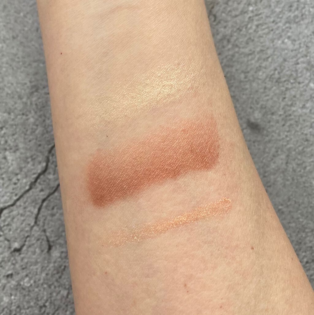 - (1)目もとクリアベース イソステアリルアルコール,ジメチコン,トリ(カプリル酸/カプリン酸)グリセリル,イソステアリン酸水添ヒマシ油,(ビニルジメチコン/メチコンシルセスキオキサン)クロスポリマー,マイクロクリスタリンワックス,水添ヒマシ油,セルロース,ポリエチレン,水添ポリイソブテン,ヒアルロン酸Na,パラフィン,合成ワックス,トコフェロール,リンゴ酸ジイソステアリル,アルミナ,トリ酢酸テトラステアリン酸スクロース,シリカ,ポリリシノレイン酸ポリグリセリル-6,BHT,プロピルパラベン,メチルパラベン,マイカ,合成金雲母,酸化チタン,酸化鉄 (2)シームレスグラデカラー タルク,ラウロイルリシン,ジメチコン,リンゴ酸ジイソステアリル,イソステアリン酸水添ヒマシ油,トリエチルヘキサン酸トリメチロールプロパン,ワセリン,セスキイソステアリン酸ソルビタン,ヒアルロン酸Na,ジステアリン酸Al,トコフェロール,シリカ,酸化スズ,アルミナ,エチルパラベン,メチルパラベン,クロルフェネシン,マイカ,酸化鉄,酸化チタン,合成金雲母,グンジョウ,赤226,黄4 (3)艶ポイントカラー タルク,リンゴ酸ジイソステアリル,ワセリン,ジメチコン,トリエチルヘキサン酸トリメチロールプロパン,メタクリル酸メチルクロスポリマー,イソステアリン酸水添ヒマシ油,ヒアルロン酸Na,セスキイソステアリン酸ソルビタン,ジステアリン酸Al,トコフェロール,酸化スズ,アルミナ,シリカ,メチルパラベン,エチルパラベン,クロルフェネシン,合成金雲母,マイカ,酸化チタン,酸化鉄,グンジョウ,赤226,黄4