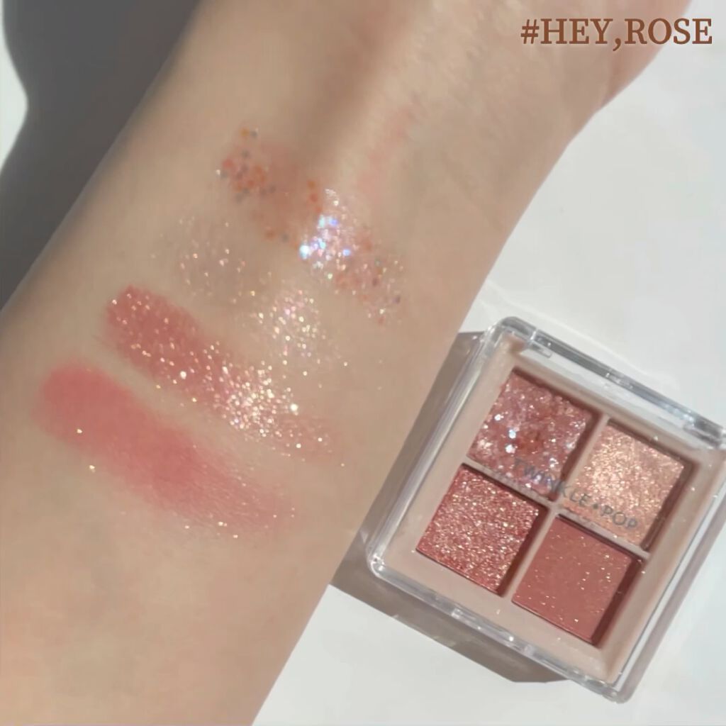 深めカラー×キラキラグリッター 全国のセブンイレブンで1397円で買えちゃう、クリオの姉妹ブランド twinkle pop! 温かみのあるレッドブラウン。ありそうでなかった、赤み強めでオレンジ、ブラウンみを感じるカラーで、秋冬に使いたいこっくりカラー。 儚さを演出できるパープルシャドウ。右上のパープル系のパールマット 1色でも仕上がる可愛さ。