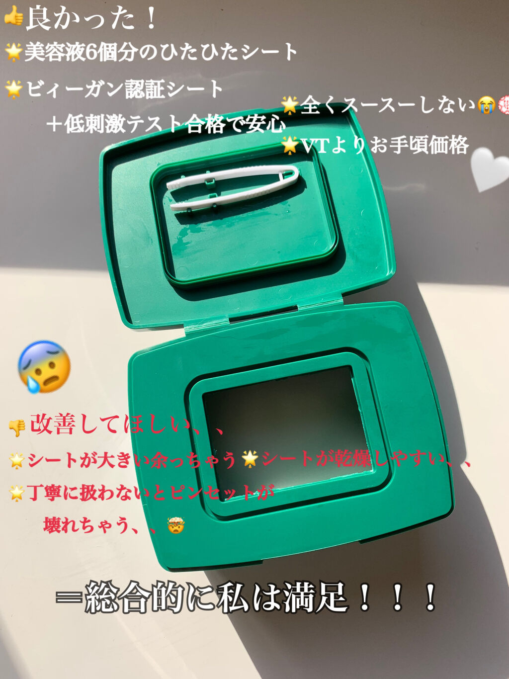| シートがみかん色でびっくり! とろっとろの液が含まれていて 貼り付けたらぴたーっとくっついてすごく気持ちいい! | 詳細を見る | |