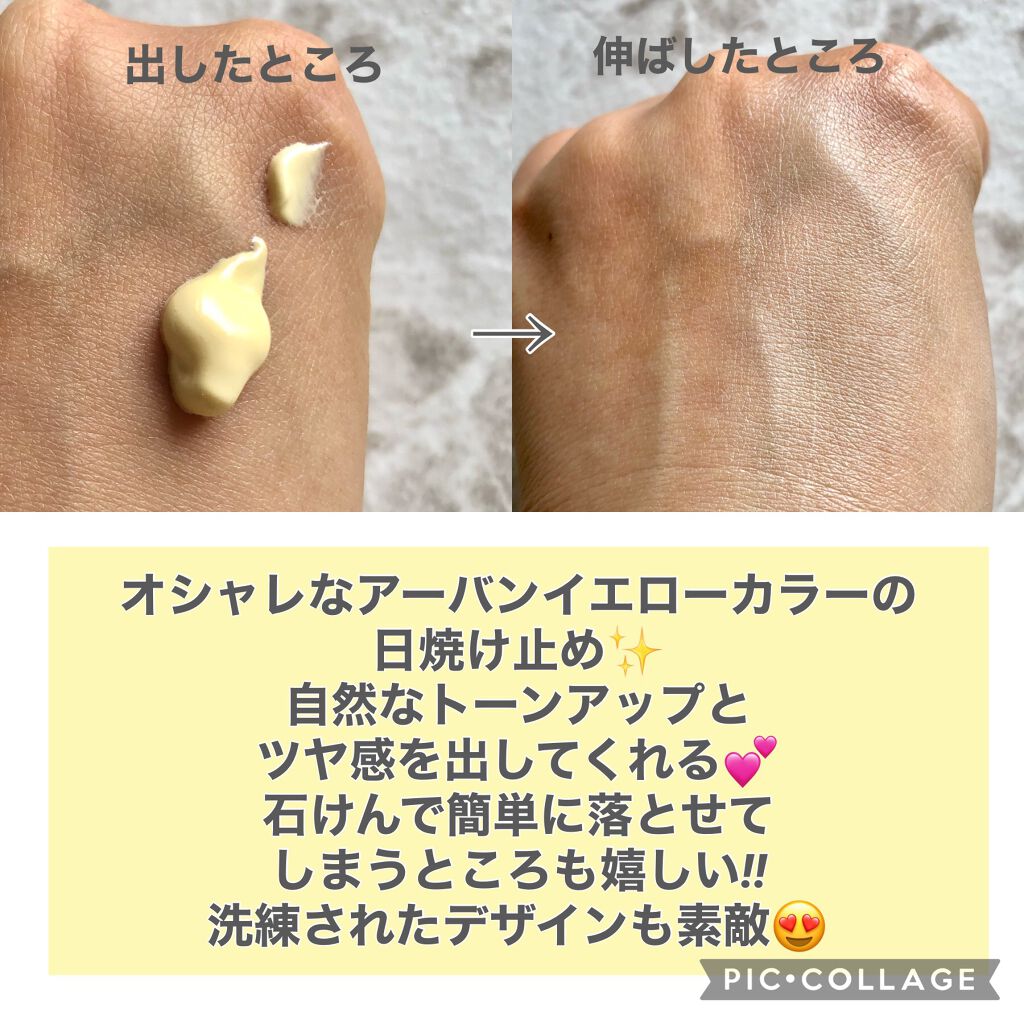 - くすみオフ※ × ツヤ肌オン!ナチュラルトーンアップが叶う日やけ止めが登場 ♡ SPF50+ PA++++ の紫外線防止効果に加え、こだわりのイエローカラーで白浮きせず、お肌を自然にトーンアップできる商品です。 〇こだわりポイント〇 ①お肌にうれしい3つのフリー処方! アルコールフリー、パラベンフリー、鉱物油フリー ②こだわりのイエローカラー! お肌にのせると、ナチュラルにトーンアップが叶う ③みずみずしいツヤ感が持続! ④SNS でも目立つデザイン!POPなカラーが他にはないかわいさ♡ ⑤気分はじけるデイタイムジョイの香り (※メイク効果による)