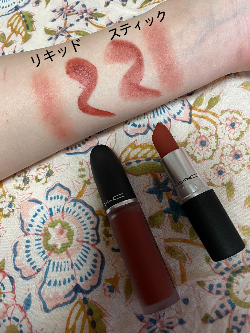 ●M・A・C パウダーキスリップスティック マラケシュミア ¥3,520 パウダーキスリキッドリップカラー マラケシュミア ¥4,290真っ赤ではなく肌なじみ良い上品なオレンジブラウン🧡どんなアイメイクでも合うような気がします✨・スティックは...