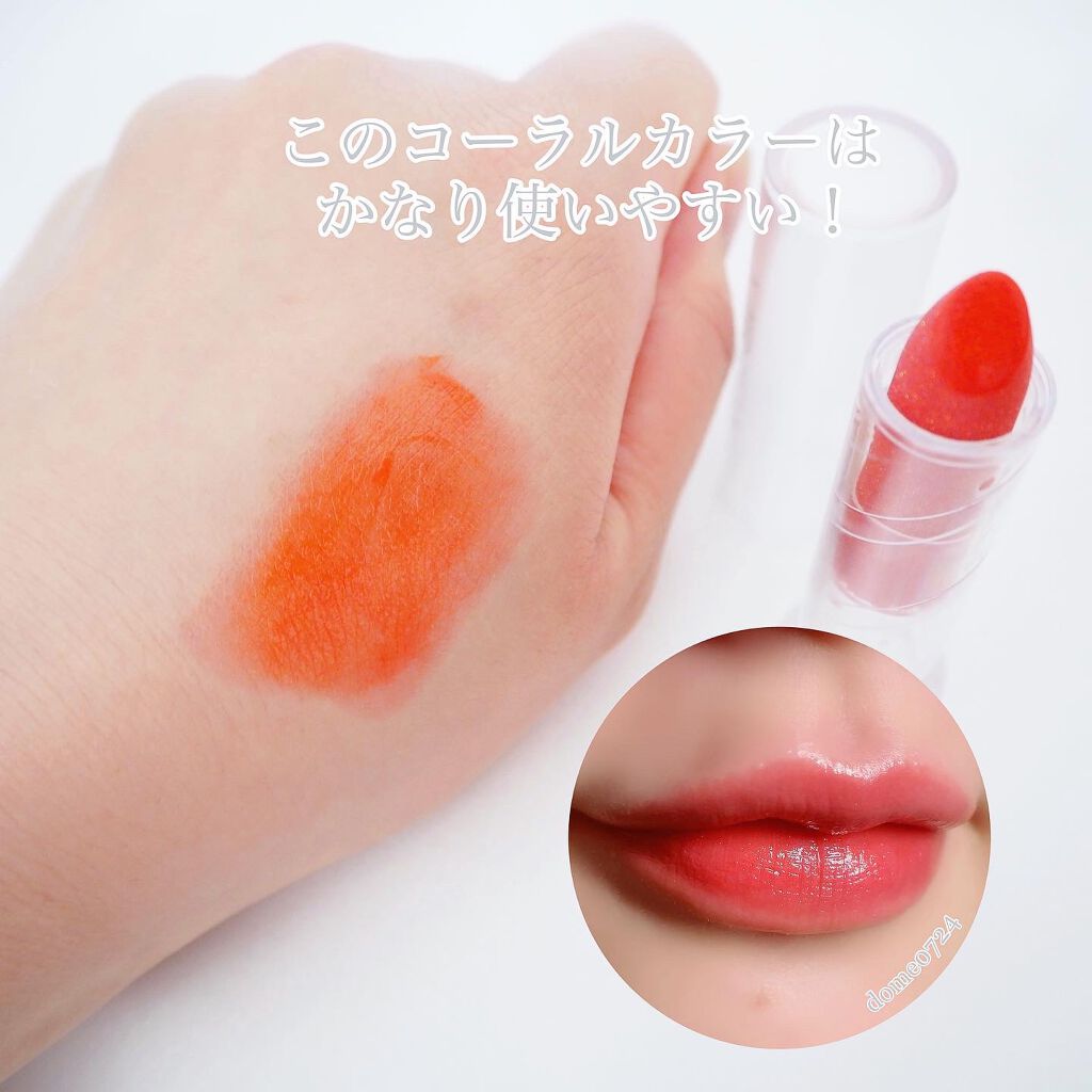 とにかく質感がしーっとりととろけるバームテクスチャーで、保湿力はかなり高い! 少しペタペタもしますが密着力もあるので色持ち良し♪ マスクレスの時にぜひ使いたいぷるぷるでツヤがきれいな仕上がりです。 カラー展開も豊富で、イエベさん向けブルベさん向け揃ってます☆ 私のお気に入りは01と05♡ そして08 Coraliaも可愛くって好き! 6月からドラッグストアにも展開予定だそうですよ♡