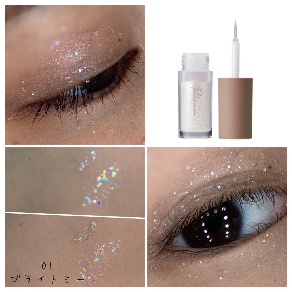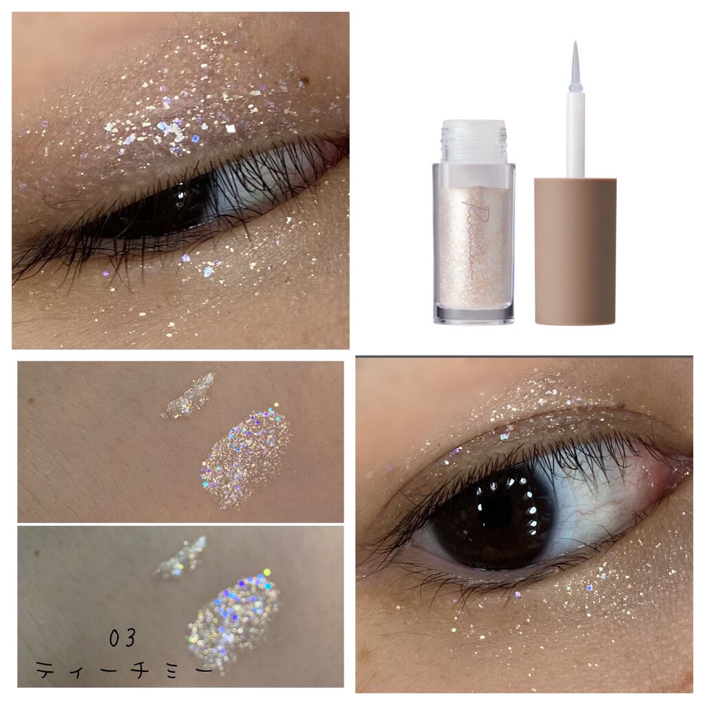 Ririmewピックミーアイズグリッター01 ブライトミー万能カラーでピュアな目元に白ベースのグリッターです!02オンリーミーピンクカラーでアイドルのような目元にベースの細かいラメもピンクで1番肌に馴染みそうです。03ティーチミーベージュカラ...