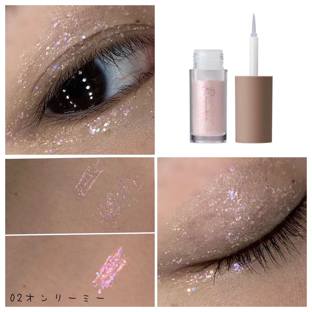 星屑のような輝きをまとうラメライナー #多色ラメ #星屑グリッター しっとりウォーターベース処方 細かなラメも逃すことなくしっかり密着し仕上がり長時間キープ 02オンリーミーはピンクベースのグリッター ピンクメイクの時は必ず使っちゃうよ。