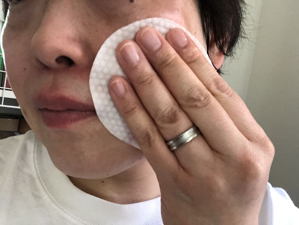 とても使い勝手の良いピーリングパッドです。 こちらは大判サイズで顔の洗顔やスキンケアをこれ1つでこなしてくれるピーリングパッドです。 これ1枚で洗顔、化粧水、美容液の3役をこなしてくれるので育児や家事でバタバタの時はこれだけでさっと時短スキンケアをするようにしています。 かなりヒタヒタになっておりエンボス面とつるつるな面があり2つの面をそれぞれ駆使しながら使っています。 「ヒアルロン酸」「スクワラン」「セラミド」「フラーレン」などはじめとした、美容成分26種類植物由来原料17種類が含まれておりすごく贅沢ですよね。 夏の汗をかく時期なので、お出かけから帰って来たときにもさっと拭いて洗顔とスキンケア変わりに使用していますが手軽に使えてオススメです。