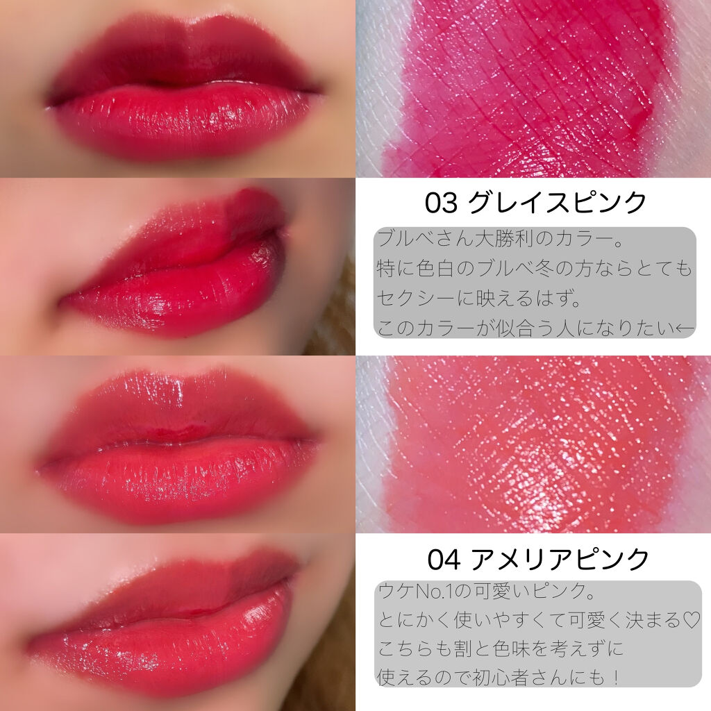 | 口紅・グロス・リップライナーランキング第36位 | 乾燥しにくく、艶感をキープしてくれて、ティント特有の色持ちも良く、ぷるっとしたジューシーな唇に仕上がります | 詳細を見る | |