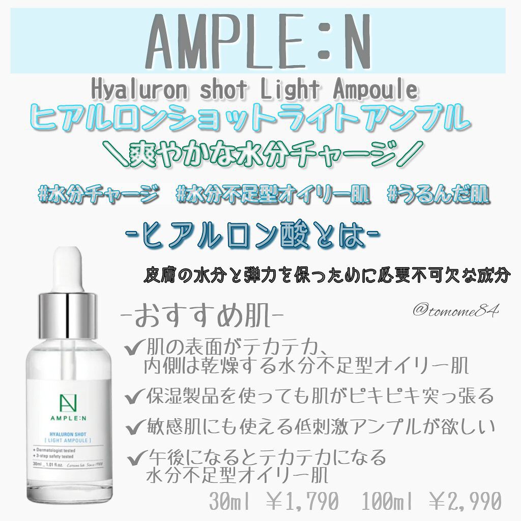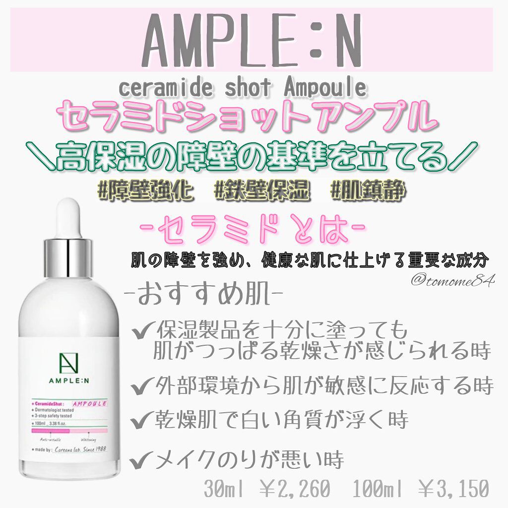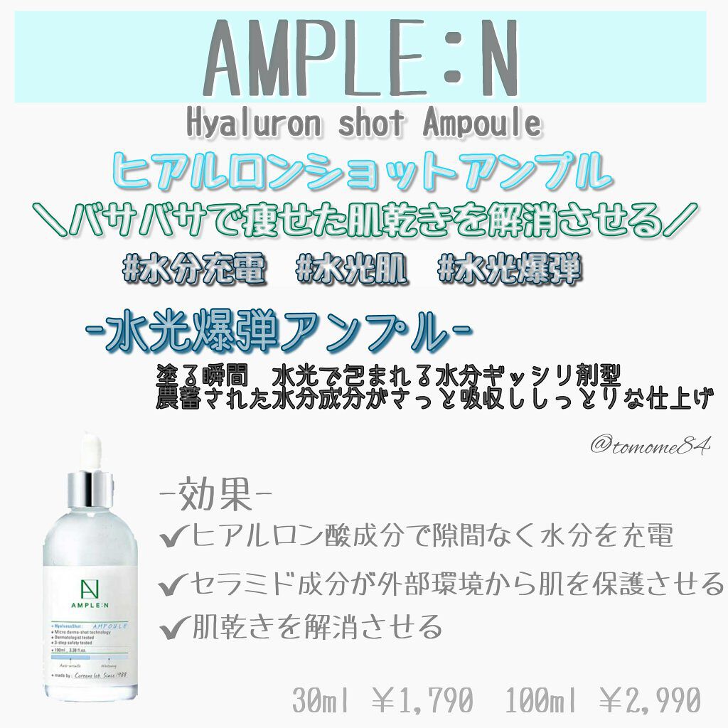 AMPLE:N-アンプルエン-\プチプラなのに優秀なアンプルを徹底比較/全9種類のアンプルアンプルをメインで作っているブランドで鎮静、水分、美白、しわ改善、ハリ弾力等と各々のアンプルによって効果は様々。大容量の100mlアンプルで、コスパもい...