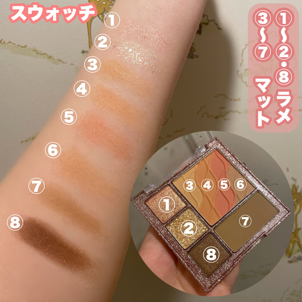 | 粉質はしっとりとしていて粉飛びもそこまで気にならず、まぶたにピターッと密着してくれるような使用感 | 詳細を見る | |