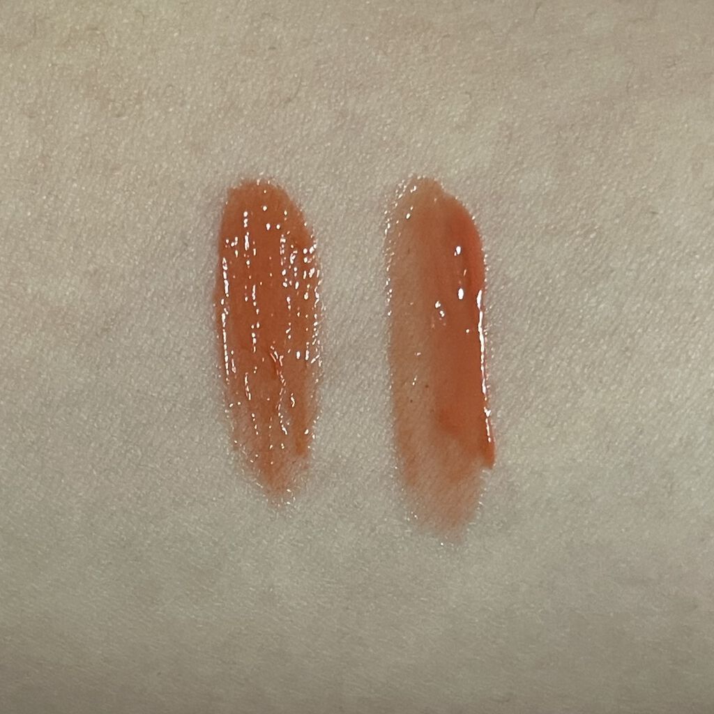 ロムアンド グラスティングウォーターティント10アピュー ジューシーパンティントbe01ロムアンドの方がツヤがある。ティッシュオフすると色はほとんど同じ#ナチュラルメイクを極めよう#初心者メイク...