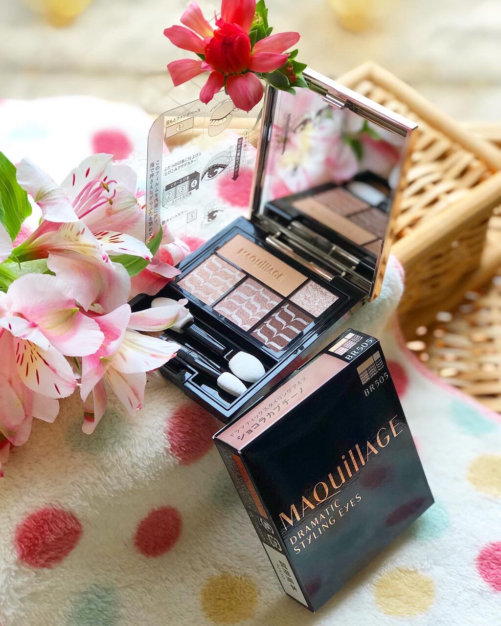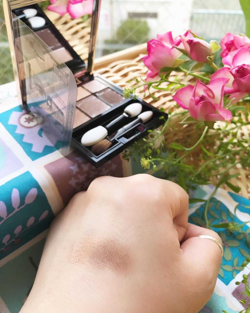 大人っぽくほろ苦いビターブラウン。3色のブラウンで陰影が際立つ目もとに 粉はしっとりとしていて肌馴染みが良いです。重ねる順番でスイートにもビターな目元にもなれます。 保湿成分「スーパーヒアルロン酸」が配合されているので、くすみのない発色が持続します。