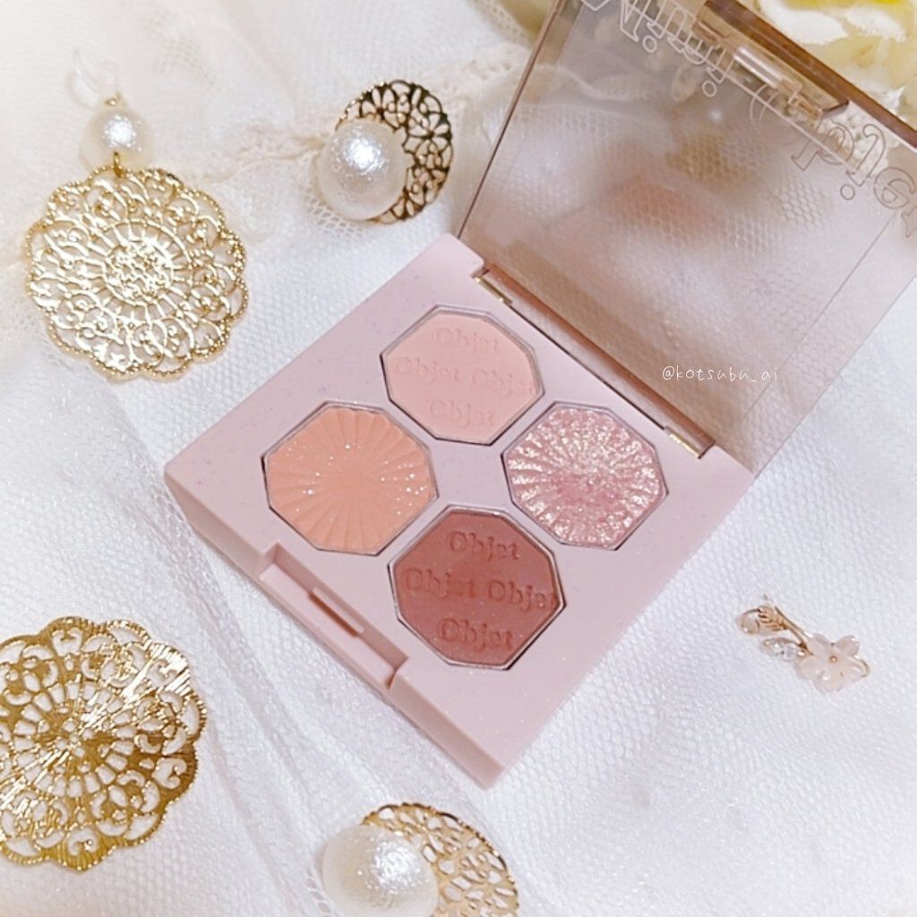 肌馴染みの良いコーラルカラー、締め色が赤みのあるブラウンなので可愛くなり過ぎず、しっかり目元をまとめてくれます◎ ヌーディーなカラーと締め色カラーはマット、メインカラーはほんのりラメ、プラスで楽しめるラメと捨て色なしの4色パレット🎨 爽やかさあふれる肌なじみのよいコーラルで可憐な印象に。