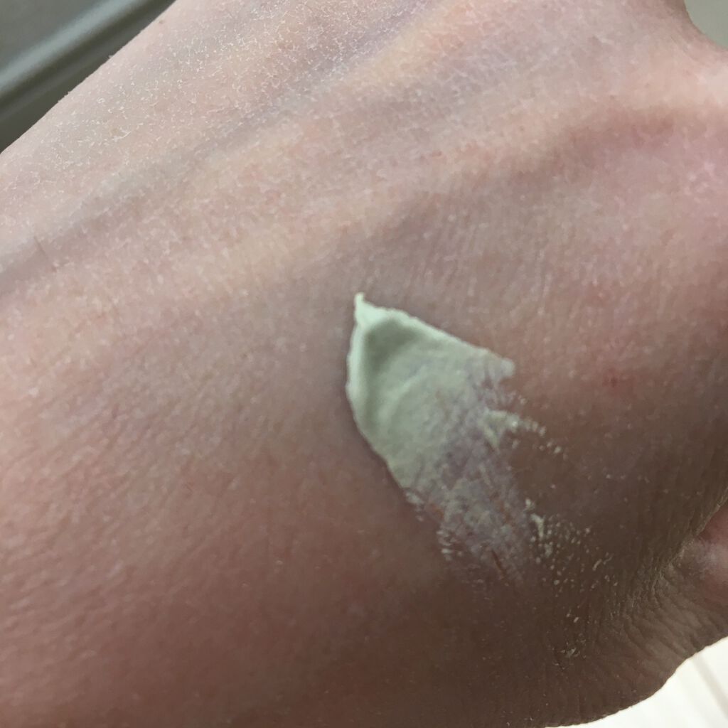 - 赤みをきちんとカバーするスキンケア兼用下地。緑色のクリームが肌でベージュ色に変化し、ニキビ跡やくすみをカバーします。
