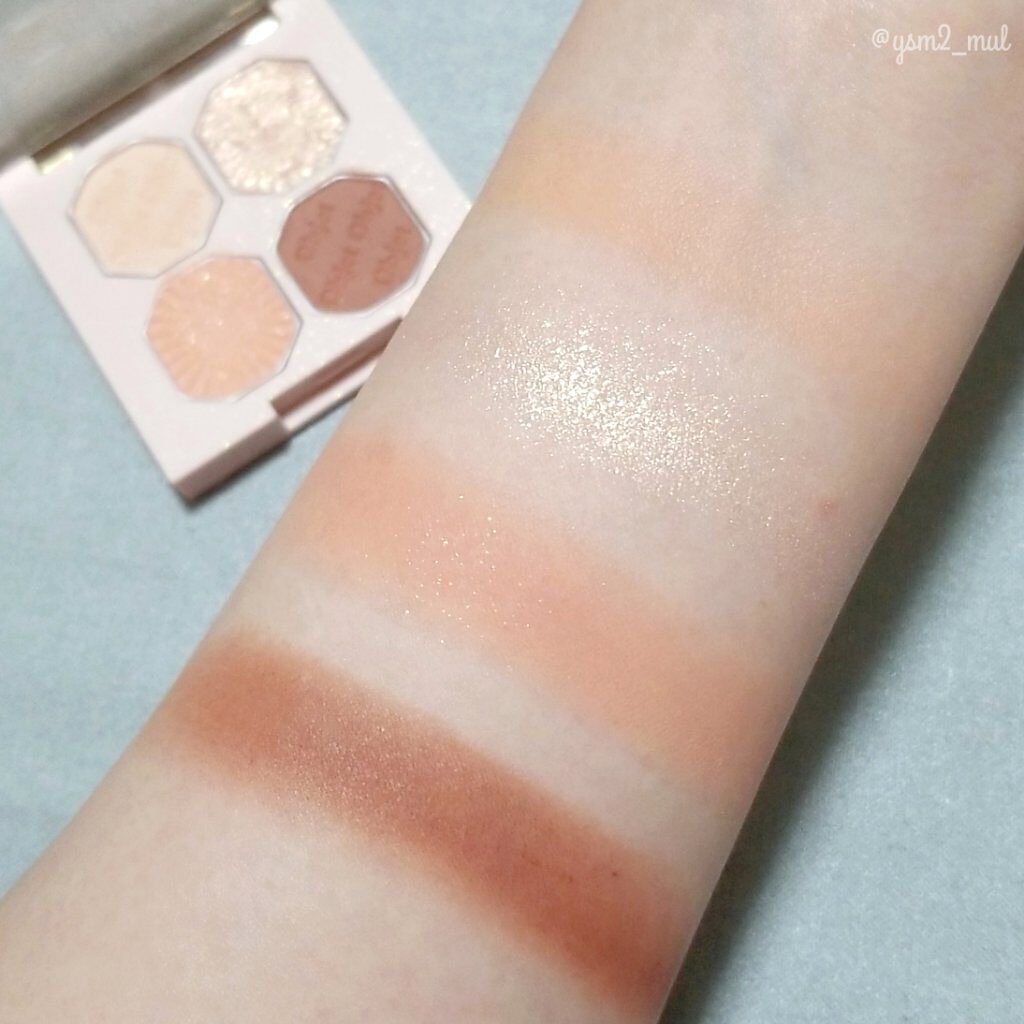 肌馴染みの良いコーラルカラー、締め色が赤みのあるブラウンなので可愛くなり過ぎず、しっかり目元をまとめてくれます◎ ヌーディーなカラーと締め色カラーはマット、メインカラーはほんのりラメ、プラスで楽しめるラメと捨て色なしの4色パレット🎨 爽やかさあふれる肌なじみのよいコーラルで可憐な印象に。