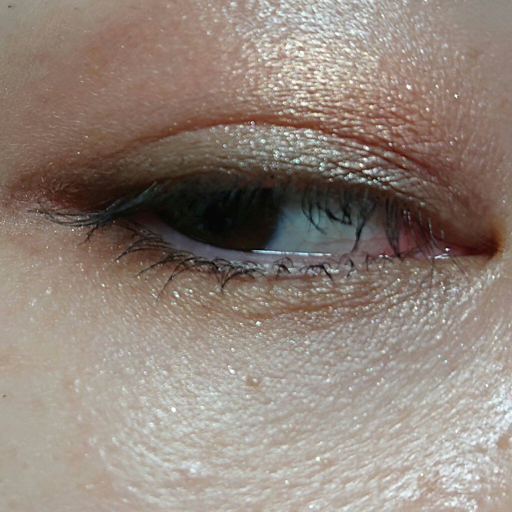 上下瞼にシルクカラーをうすく マットカラーを二重幅、上瞼の目尻に。 Viséeのグレージュブラウンのペンシルで目尻のラインをのばすきもちでひく エテュセマスカラベースアッシュラベンダーでアイメイクしあげ。 ココアブラウンリップで仕事用は完成。 Kissシアー グリッターアイズ54MASQUERADE(ロフト先行販売) 上瞼中央に薬指でちょん 偏光ラメ、青ラメ好きさんならためしてみてほしい