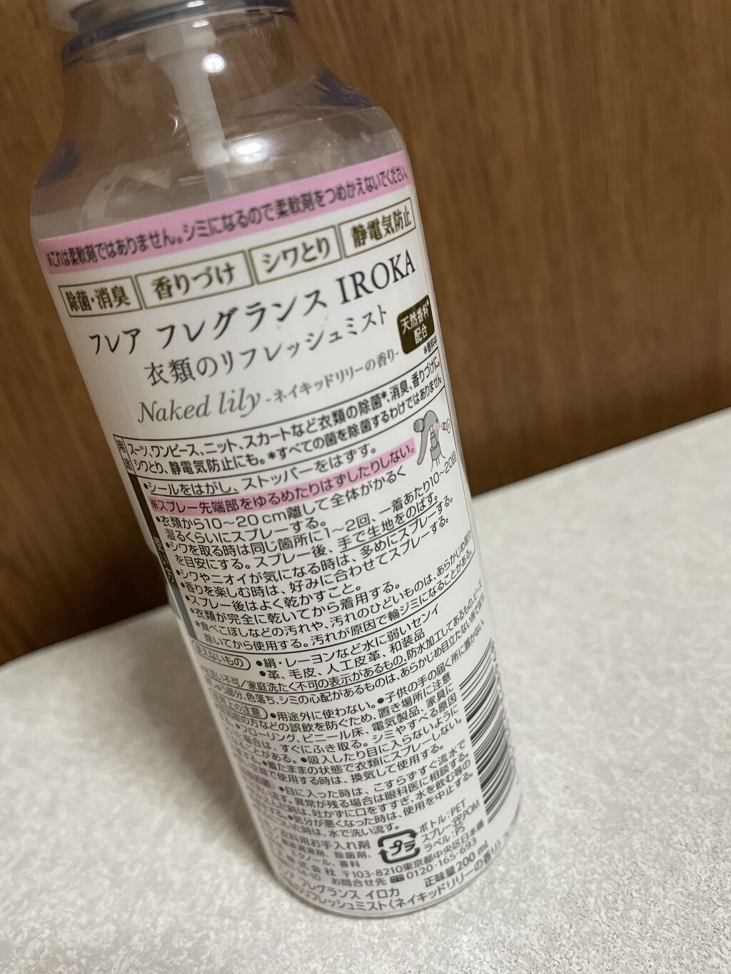 今回は、IROKA衣料用フレグランスミストネイキッドリリー使いきり&リピ買いです✨愛用中で何回もリピしています🍀秋~冬の上着はなかなか洗えないので消臭&香りづけに使っています今時期は静電気予防にも⭕️🦋消臭+除菌*+シワとり+静電気防止は嬉し...
