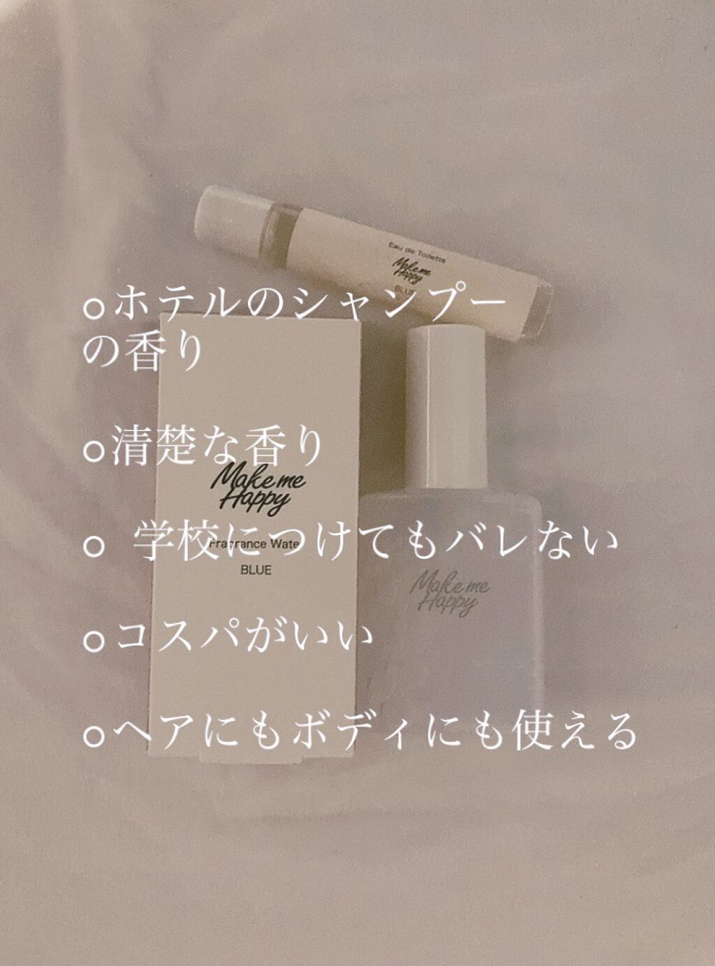 メイクミーハッピー オードトワレWHITESAVON770円【総評】清潔感のある香りで第一印象最高!【香り】超爽やかで清潔感のある香り!万人受けしそうな香りです。初めて出会う人からこの香りがしていたら第一印象が最高だなと思います。【使いやすさ...